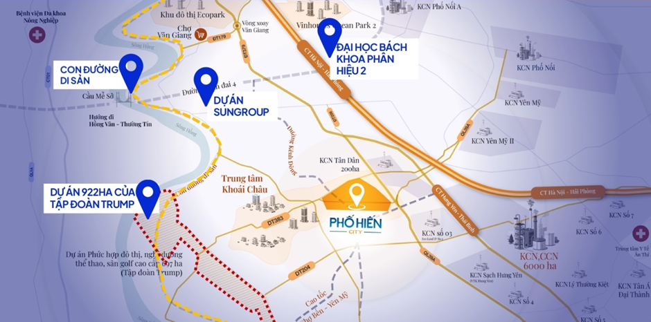 Phố Hiến City là một trong những dự án tiên phong quy mô bài bản tại Khoái Châu, cùng với: