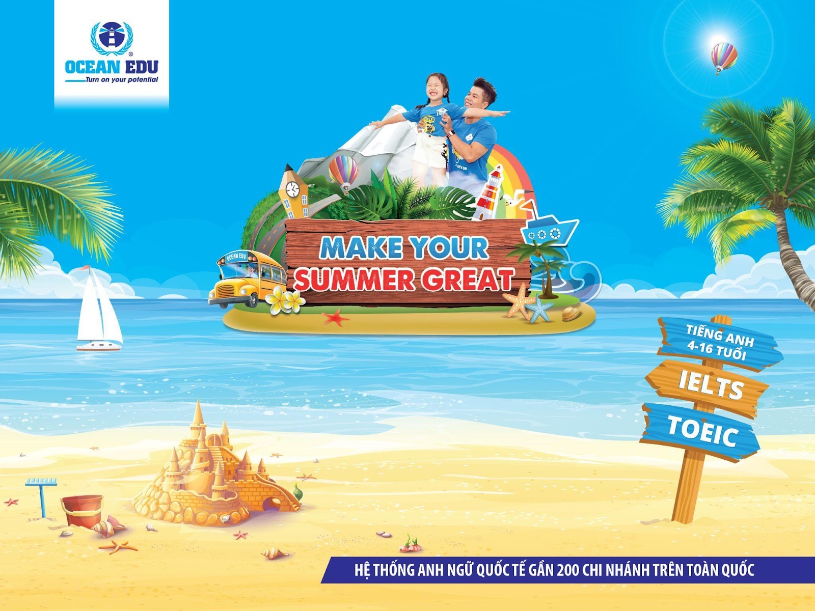 Chiến dịch hè 2025 với chủ đề “Make your summer great - làm chủ tiếng Anh, làm chủ tương lai” được Ocean Edu chính thức khởi động. Với chiến dịch này, Ocean Edu mang đến cho các em học sinh một chương trình học hè chất lượng và truyền cảm hứng, các em sẽ có cơ hội học tiếng Anh với 100% giáo viên nước ngoài, nâng cao phản xạ và tự tin giao tiếp trong môi trường chuẩn quốc tế.