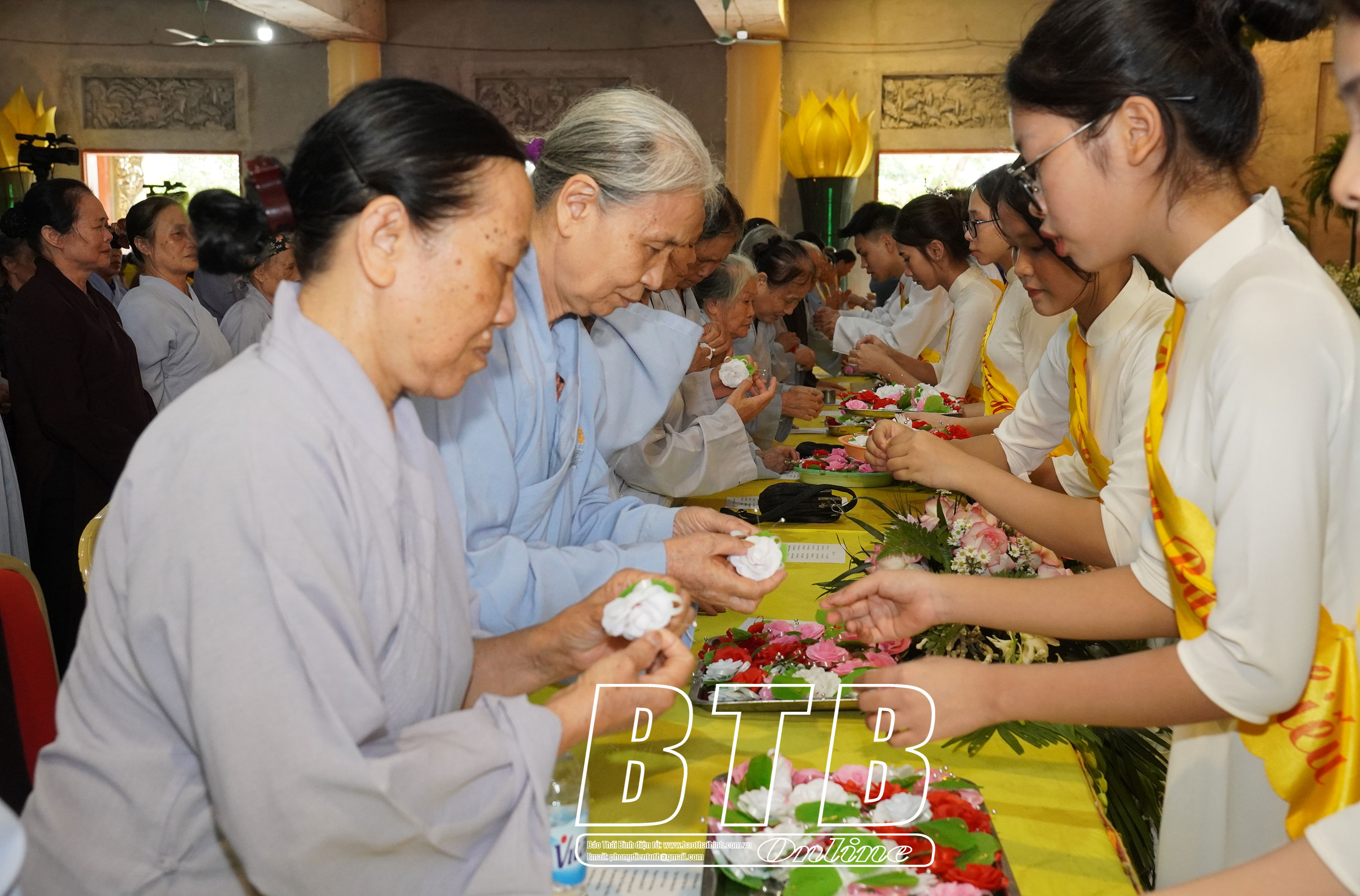 Nghi thức bông hồng cài áo tại chùa Pháp Quang, xã Tam Quang (Vũ Thư).