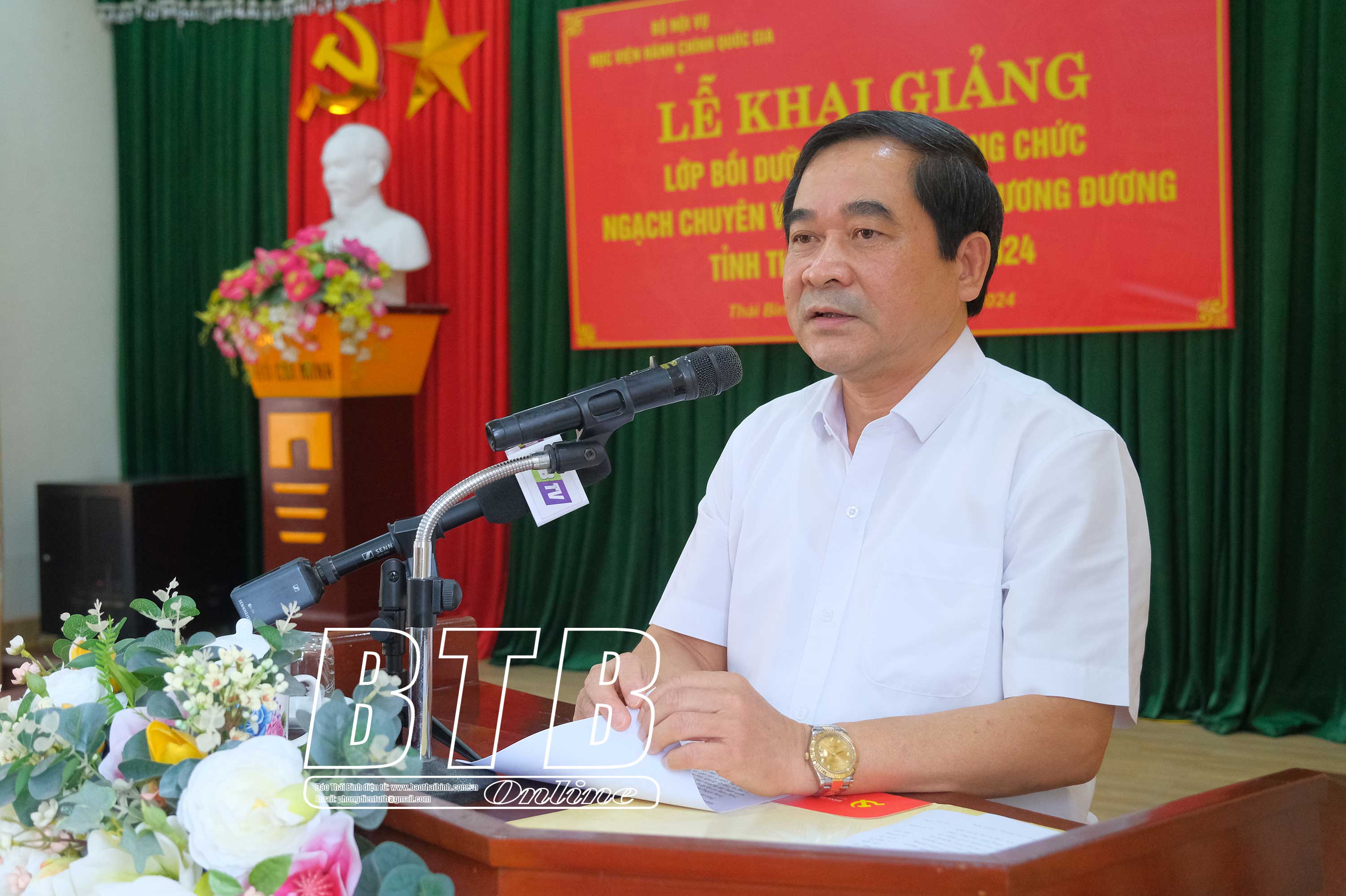 Phát biểu khai mạc lớp bồi dưỡng, đồng chí Phó Bí thư thường trực Tỉnh ủy, Chủ tịch HĐND tỉnh nhấn mạnh, tỉnh luôn đặc biệt quan tâm đến công tác đào tạo, bồi dưỡng cán bộ và coi đây là nhiệm vụ thường xuyên, có ý nghĩa quan trọng. Lớp bồi dưỡng đối với công chức ngạch chuyên viên cao cấp và tương đương là cơ hội để cán bộ, lãnh đạo quản lý các cấp, các ngành và dự nguồn diện Ban Thường vụ Tỉnh ủy quản lý nâng cao kiến thức, nhận thức để phục vụ cho quá trình công tác, phục vụ cho tiêu chí để quy hoạch, làm công tác nhân sự của Đảng trong khóa tới.