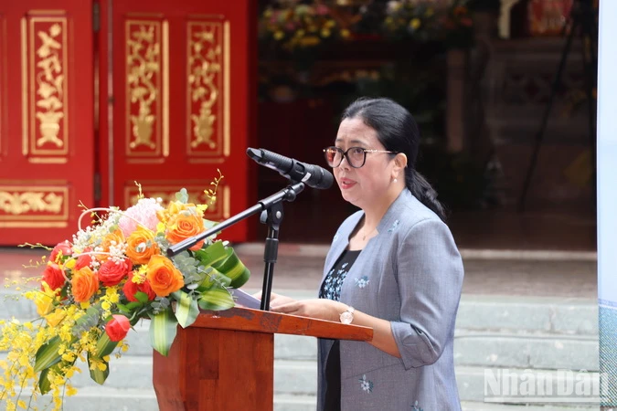 Giám đốc Sở Văn hóa, Thể thao và du lịch Đồng Nai Lê Thị Ngọc Loan phát biểu tại Lễ tưởng niệm.