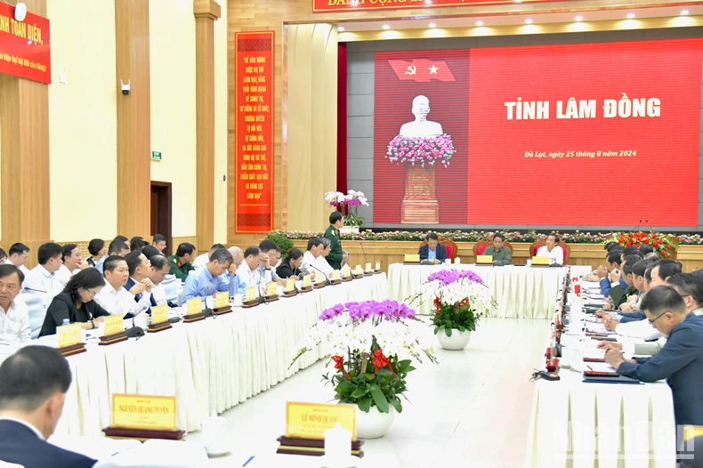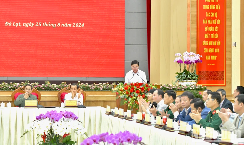 Ngày 25/8, tiếp tục chuyến công tác tại tỉnh Lâm Đồng, Thủ tướng Phạm Minh Chính có buổi làm việc với Ban Thường vụ Tỉnh ủy Lâm Đồng về để đánh giá kết quả thực hiện nhiệm vụ phát triển kinh tế-xã hội năm 2023, những tháng đầu năm 2024 và phương hướng, nhiệm vụ đến năm 2025; đồng thời giải quyết, một số kiến nghị để tạo động lực mới cho sự phát triển của tỉnh.