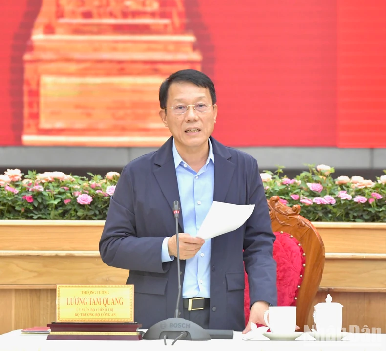 Bộ trưởng Công an Lương Tam Quang phát biểu ý kiến tại cuộc làm việc. (Ảnh: Thanh Giang).