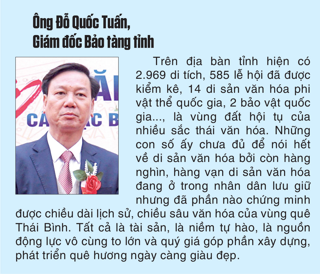 Sau thành công của cuộc thi, hơn 30 tác phẩm đạt giải ở các thể loại đã được biên tập, phát hành, dàn dựng, biểu diễn tại khắp các địa bàn, góp phần quảng bá hình ảnh mảnh đất và con người Thái Bình trong công cuộc đổi mới, đồng thời tạo không gian lan tỏa nghệ thuật cổ truyền. Hoạt động bảo tồn, phát huy các di sản văn hóa vật thể, phi vật thể trên địa bàn tỉnh không những gìn giữ nét đẹp của làng quê mà còn góp phần thực hiện thắng lợi các tiêu chí về kế thừa, phát huy hiệu quả giá trị văn hóa truyền thống trong xây dựng NTM nâng cao.