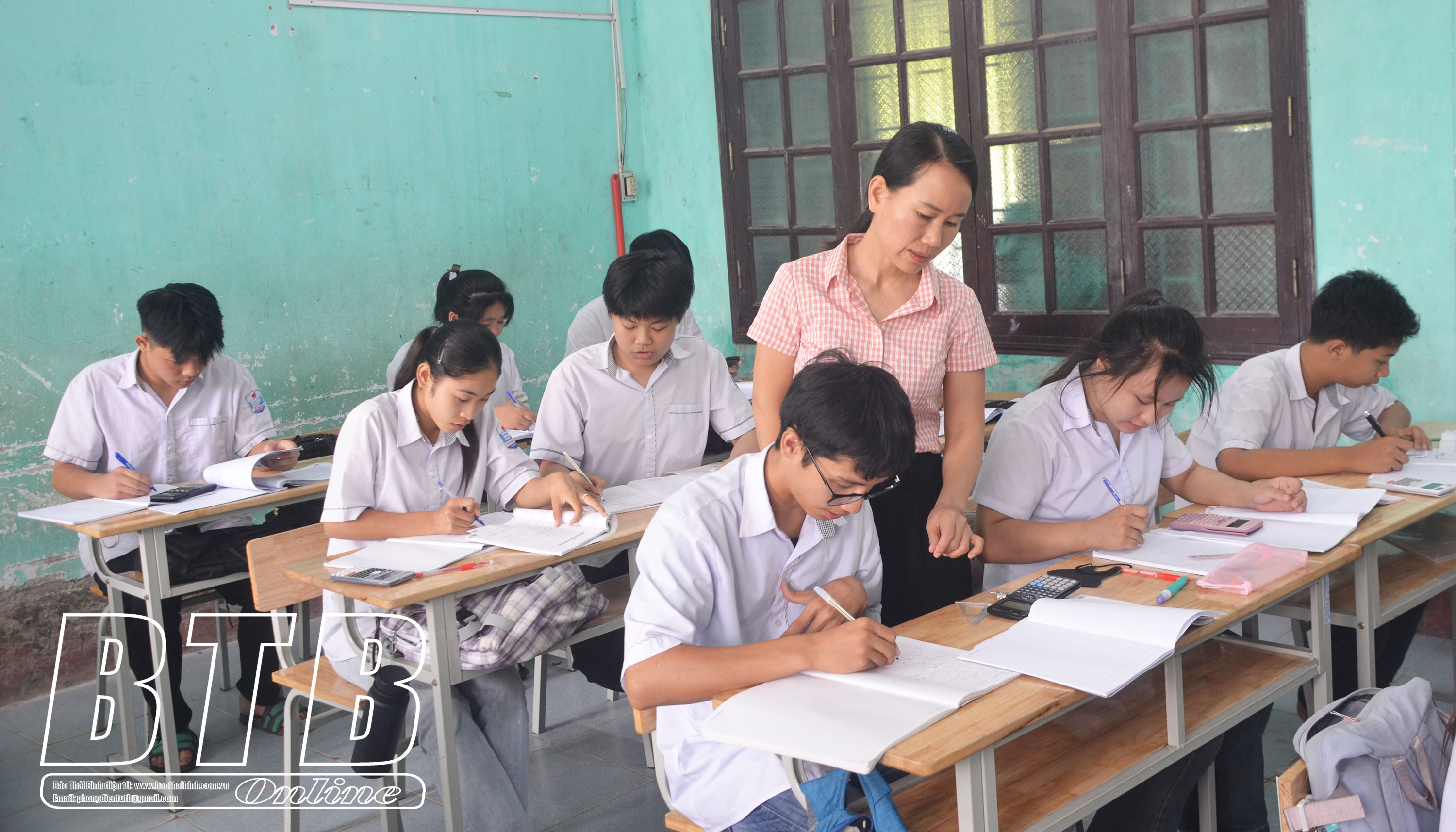 Giờ học của cô và trò Trường Tiểu học và THCS Quỳnh Khê (Quỳnh Phụ).