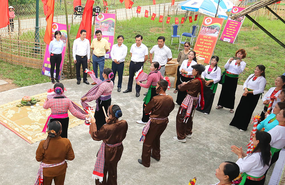 Phó Chủ tịch UBND tỉnh Hồ Đại Dũng thăm trại văn hóa huyện Tân Sơn và xem các tiết mục diễn xướng dân gian của đồng bào Mường.