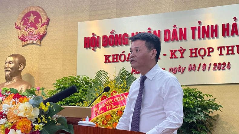 Tân Chủ tịch Ủy ban nhân dân tỉnh Hải Dương phát biểu tại kỳ họp thứ 25 Hội đồng nhân dân tỉnh Hải Dương.