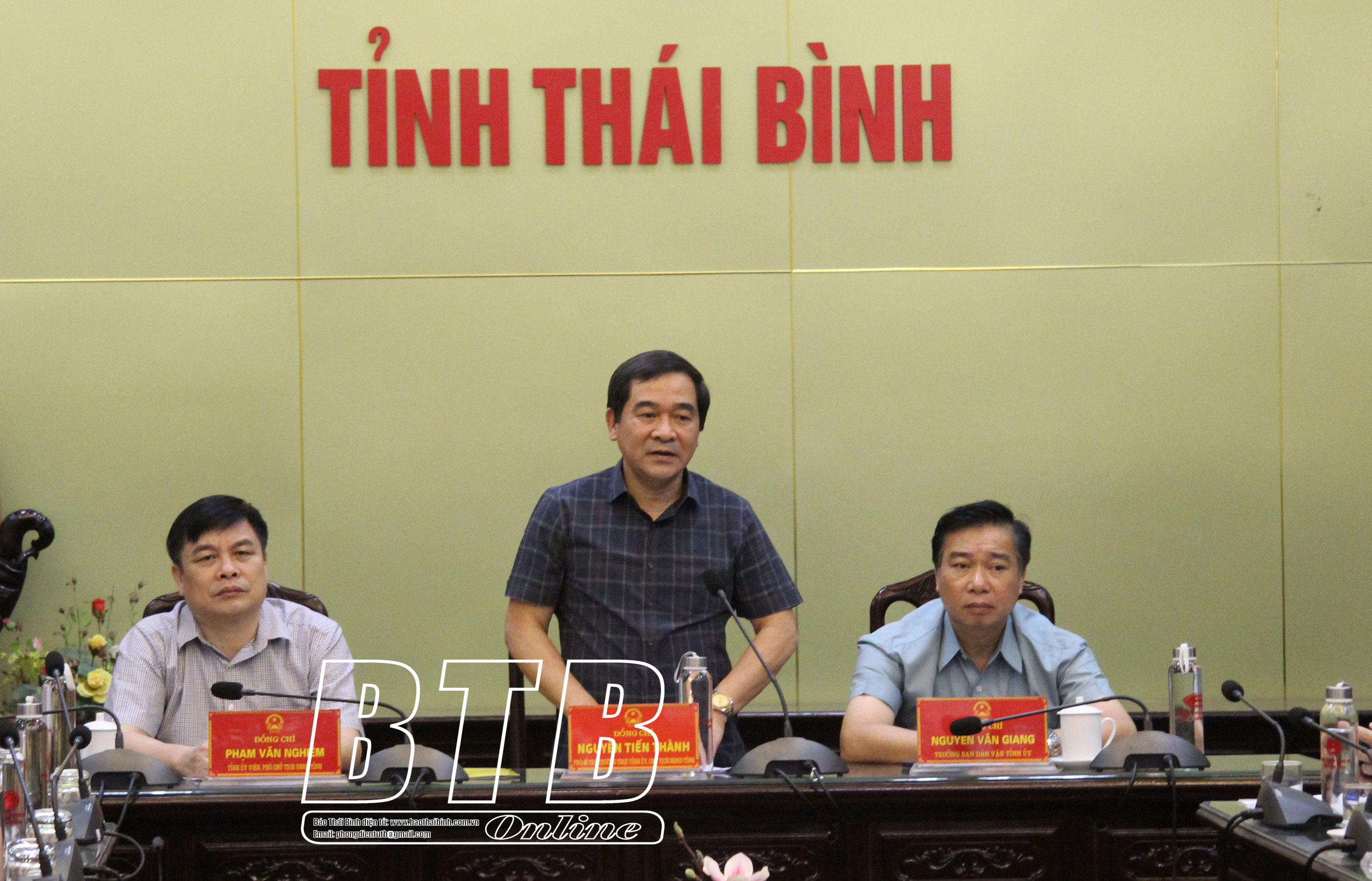 Sáng ngày 6/9, các đồng chí: Nguyễn Tiến Thành, Phó Bí thư thường trực Tỉnh ủy, Chủ tịch HĐND tỉnh; Nguyễn Văn Giang, Ủy viên Ban Thường vụ, Trưởng ban Dân vận Tỉnh ủy; Phạm Văn Nghiêm, Tỉnh ủy viên, Phó Chủ tịch UBND tỉnh cùng lãnh đạo một số sở, ban, ngành, đơn vị của tỉnh kiểm tra, chỉ đạo công tác phòng, chống bão số 3 tại các huyện: Vũ Thư, Hưng Hà.
