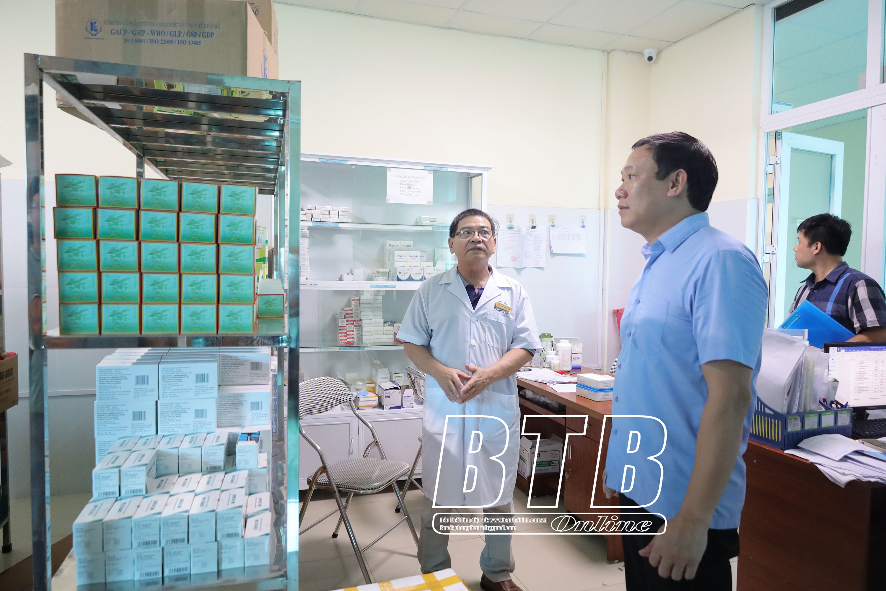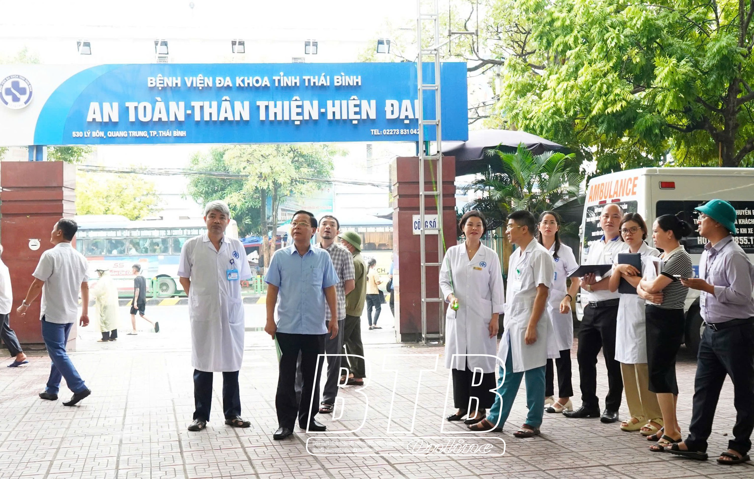 Lãnh đạo Sở Y tế kiểm tra công tác phòng, chống bão tại Bệnh viện Đa khoa tỉnh. Ảnh: Hoàng Lanh