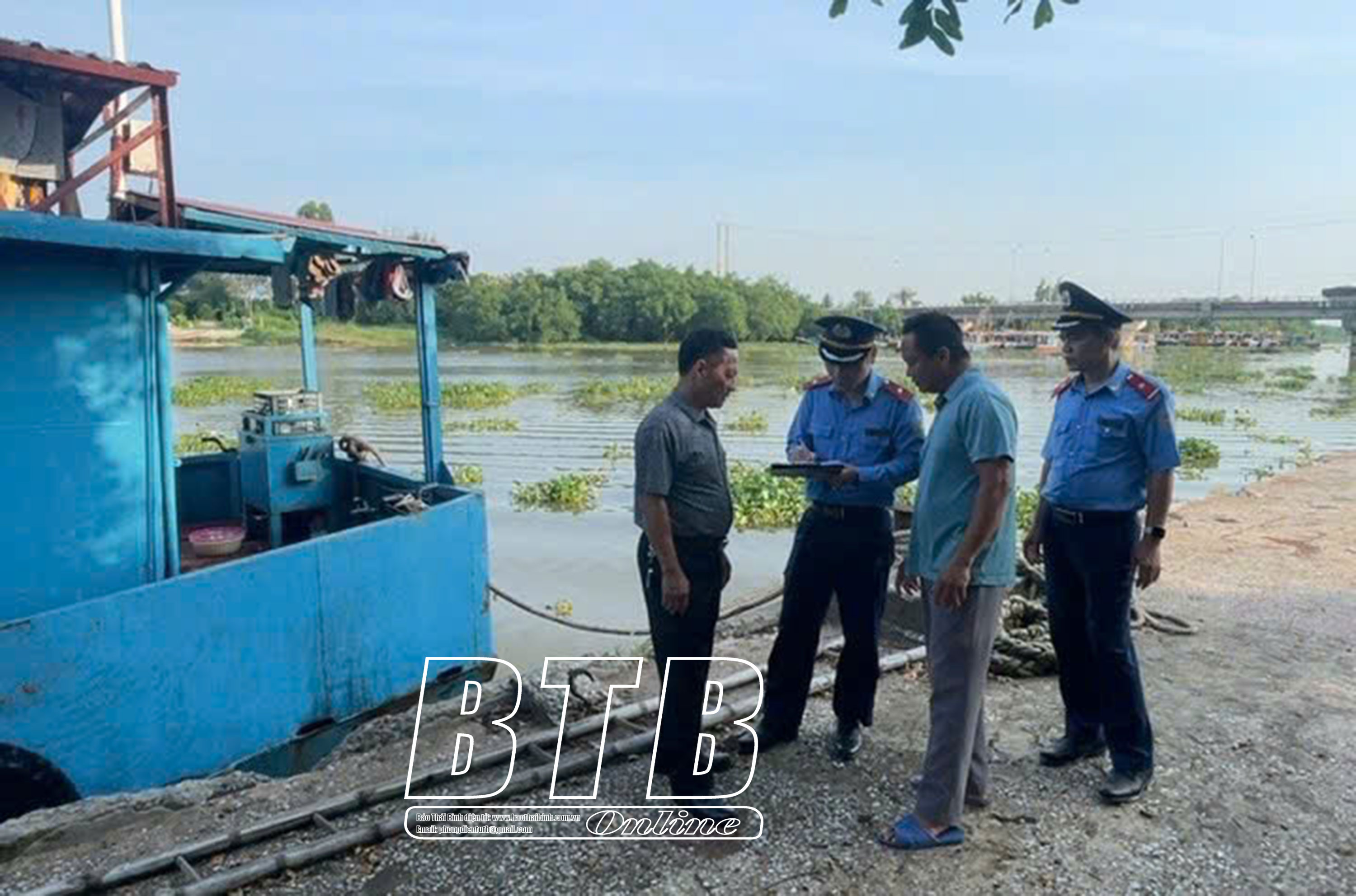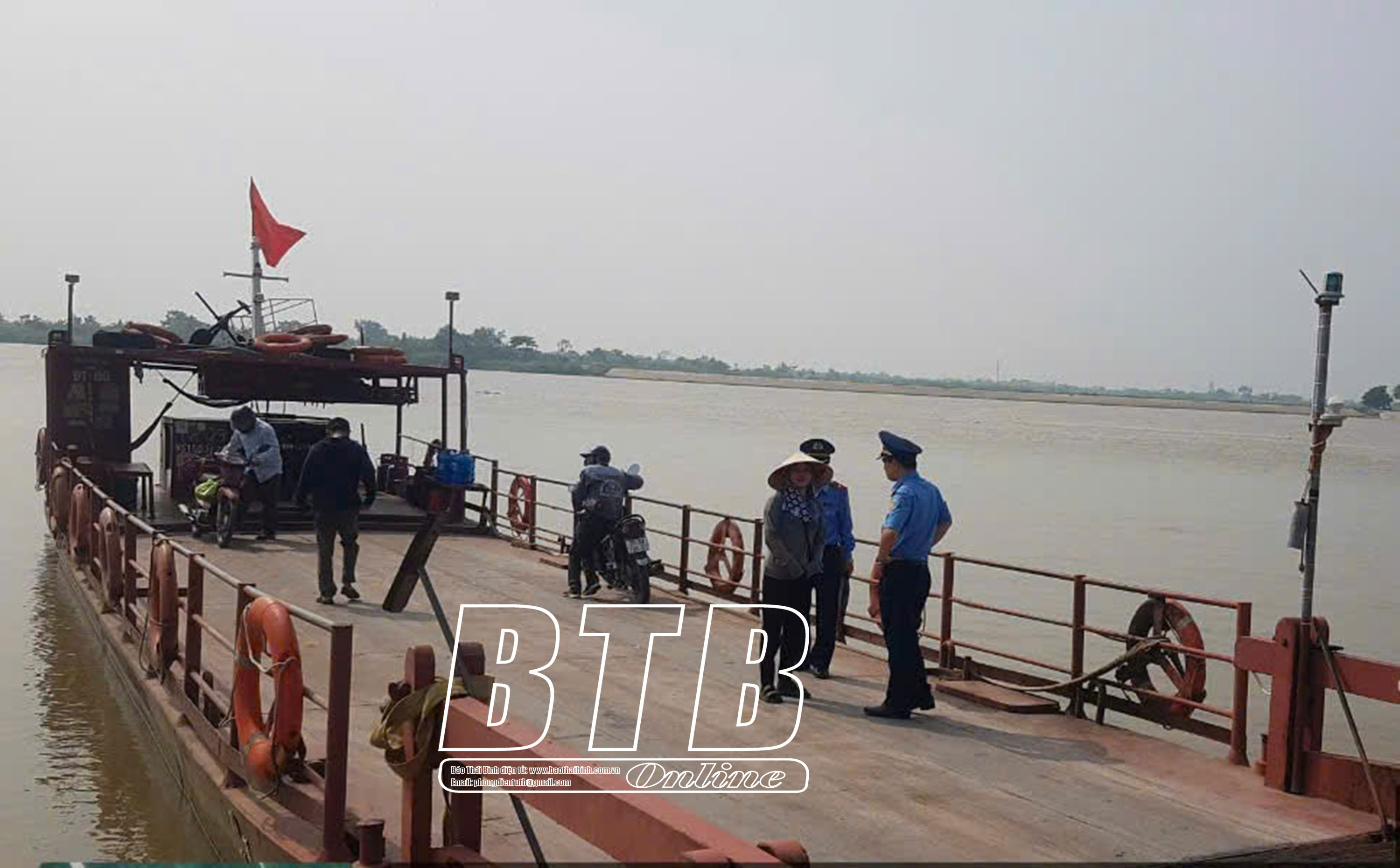 Thanh tra Sở Giao thông Vận tải kiểm tra hoạt động bến đò ngang An Cứ, xã Nam Hải (Tiền Hải). Ảnh: Nguyễn Thơi