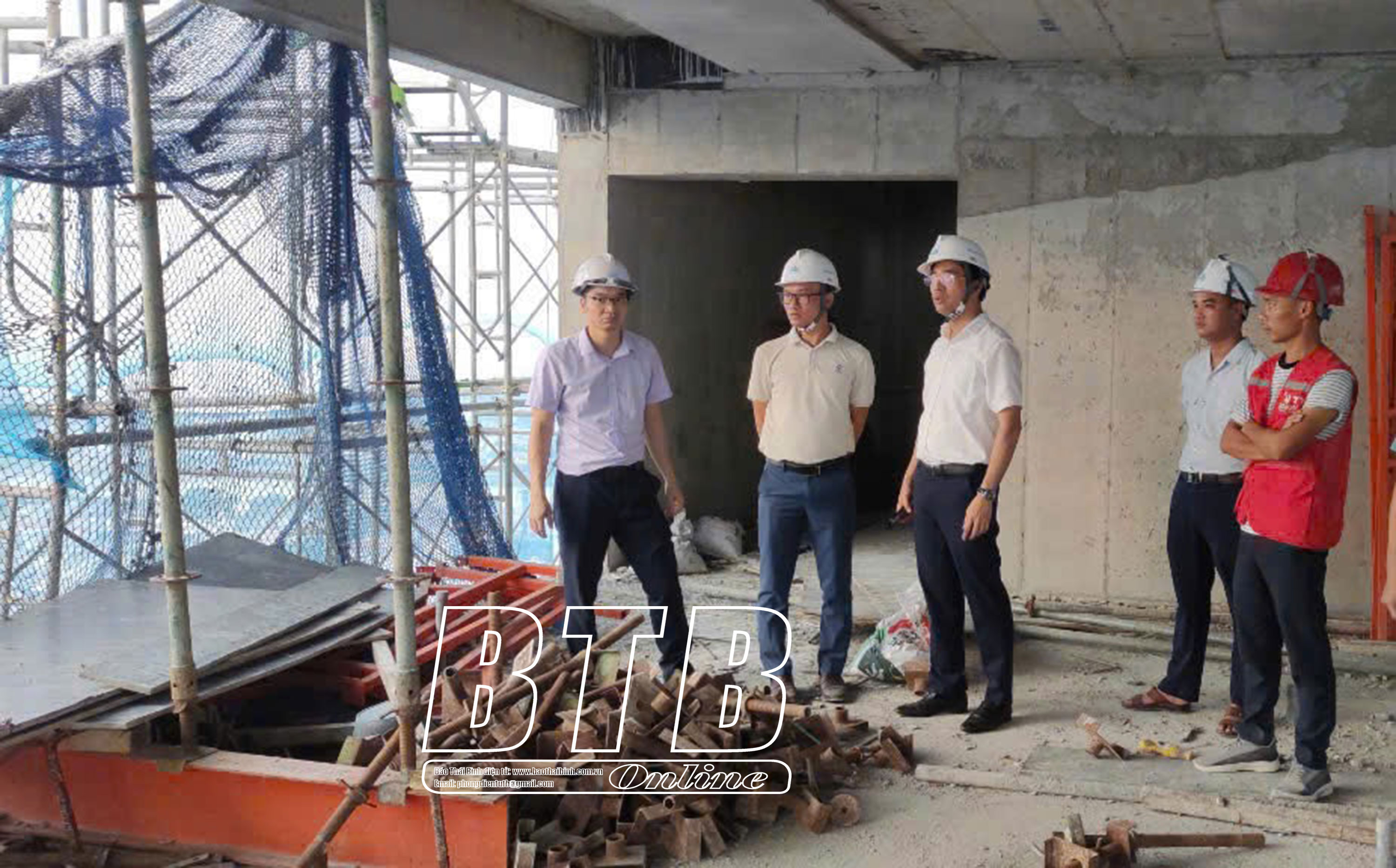 Lãnh đạo Sở Xây dựng kiểm tra công tác phòng, chống bão số 3 tại công trình xây dựng nhà ở cao tầng. Ảnh: Nguyễn Thơi