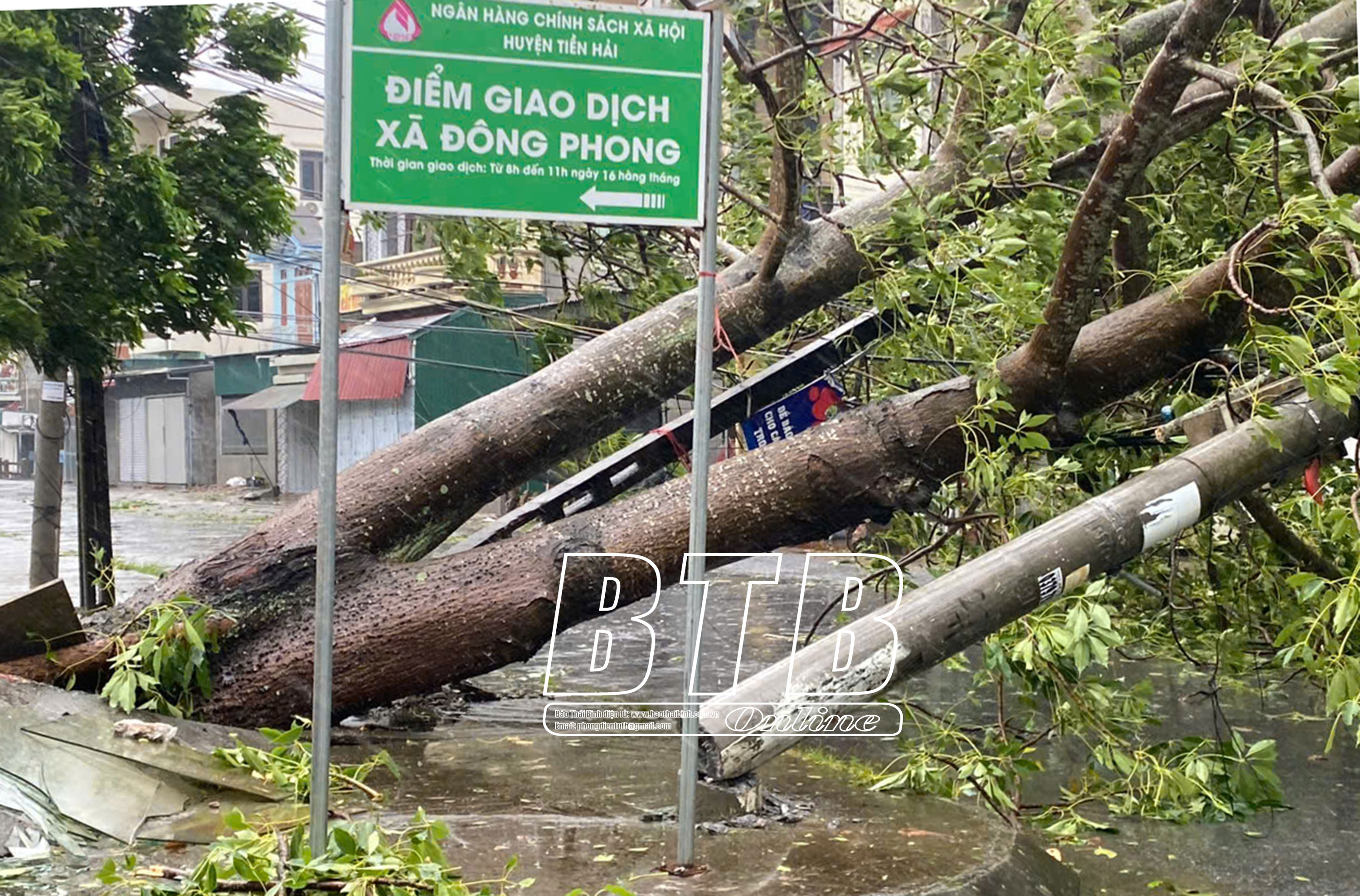 Tiền Hải: Nhiều cây cối, cột điện gãy đổ do bão số 3