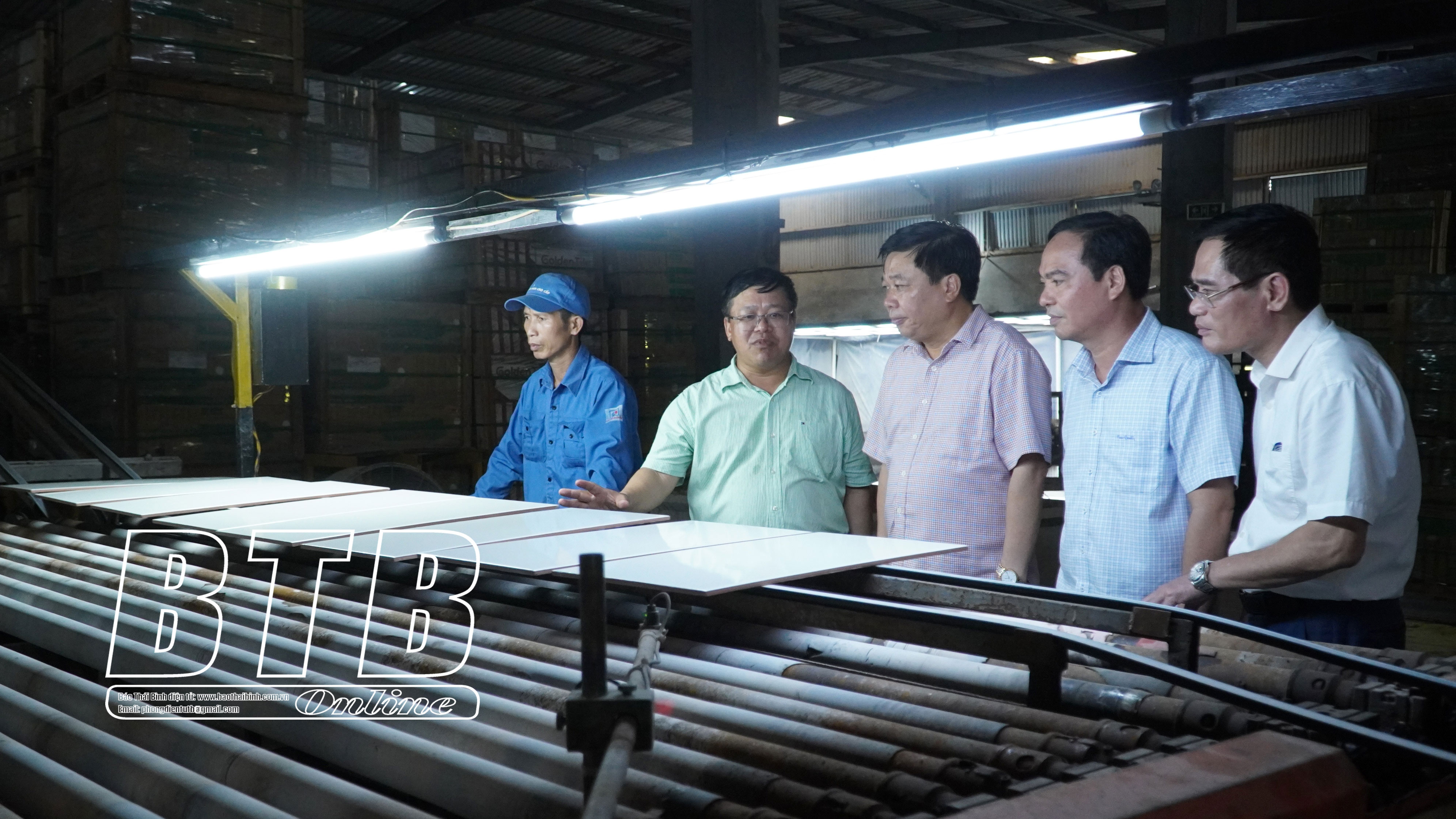 Các đồng chí lãnh đạo tỉnh thăm xưởng sản xuất của Nhà máy gạch men Mikado.