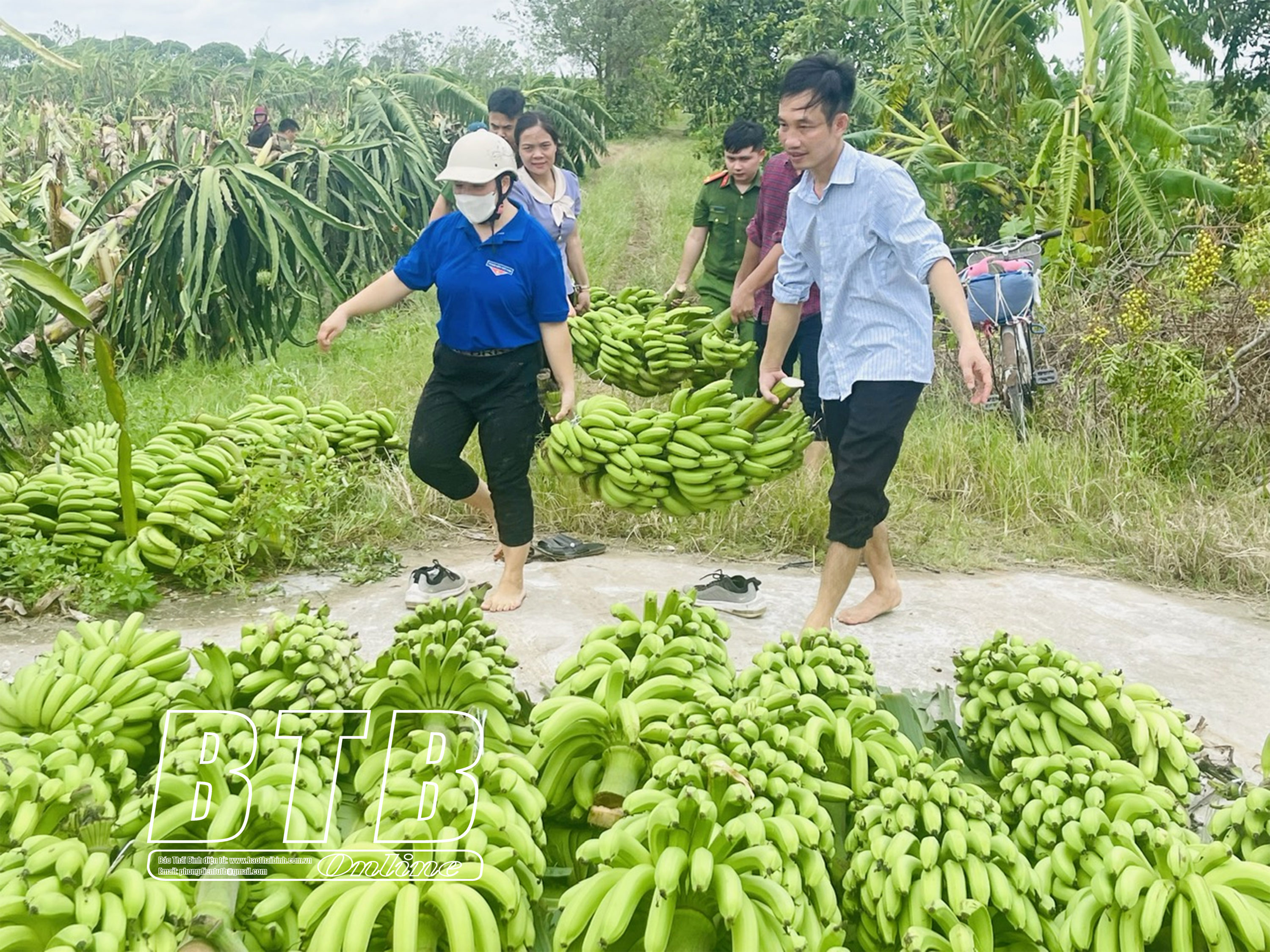 Hoạt động “giải cứu” chuối đã được các cấp từ huyện đến xã, các đơn vị, doanh nghiệp, hợp tác xã, tổ chức, cá nhân hưởng ứng nhiệt tình. Thượng úy Nguyễn Chung Kiên, Phó Trưởng Công an xã Hồng An cho biết: Công an xã đã huy động toàn bộ lực lượng cùng lực lượng tham gia bảo vệ an ninh ở cơ sở hỗ trợ người dân, hỗ trợ xe để vận chuyển giúp bà con về nơi tập kết tiêu thụ. Đặc biệt, Công an huyện Hưng Hà đã huy động cán bộ, chiến sĩ hỗ trợ mua chuối cho bà con với trị giá 15 triệu đồng.