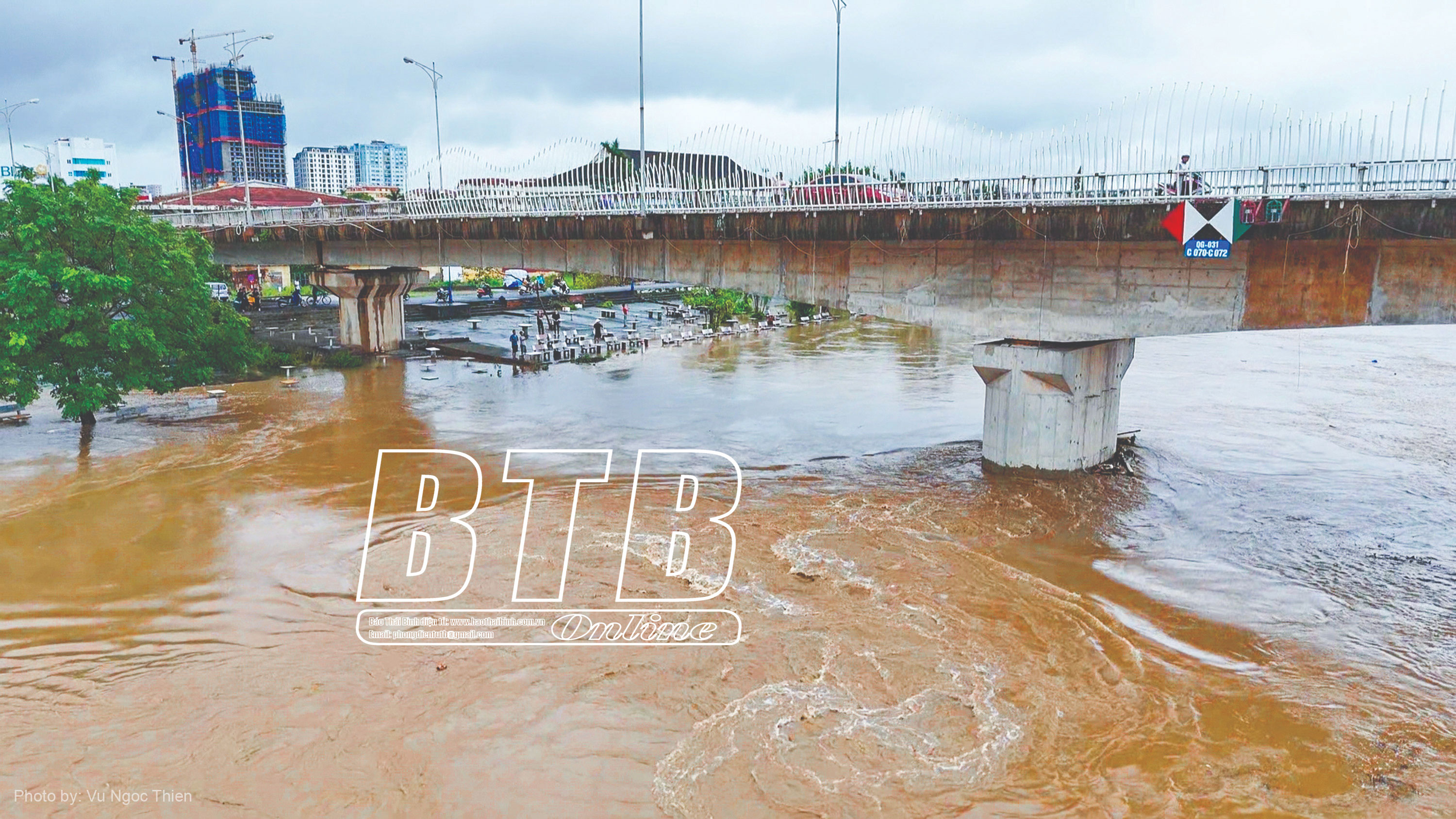 Mực nước sông Trà Lý tại thành phố đang vượt mức báo động III.
