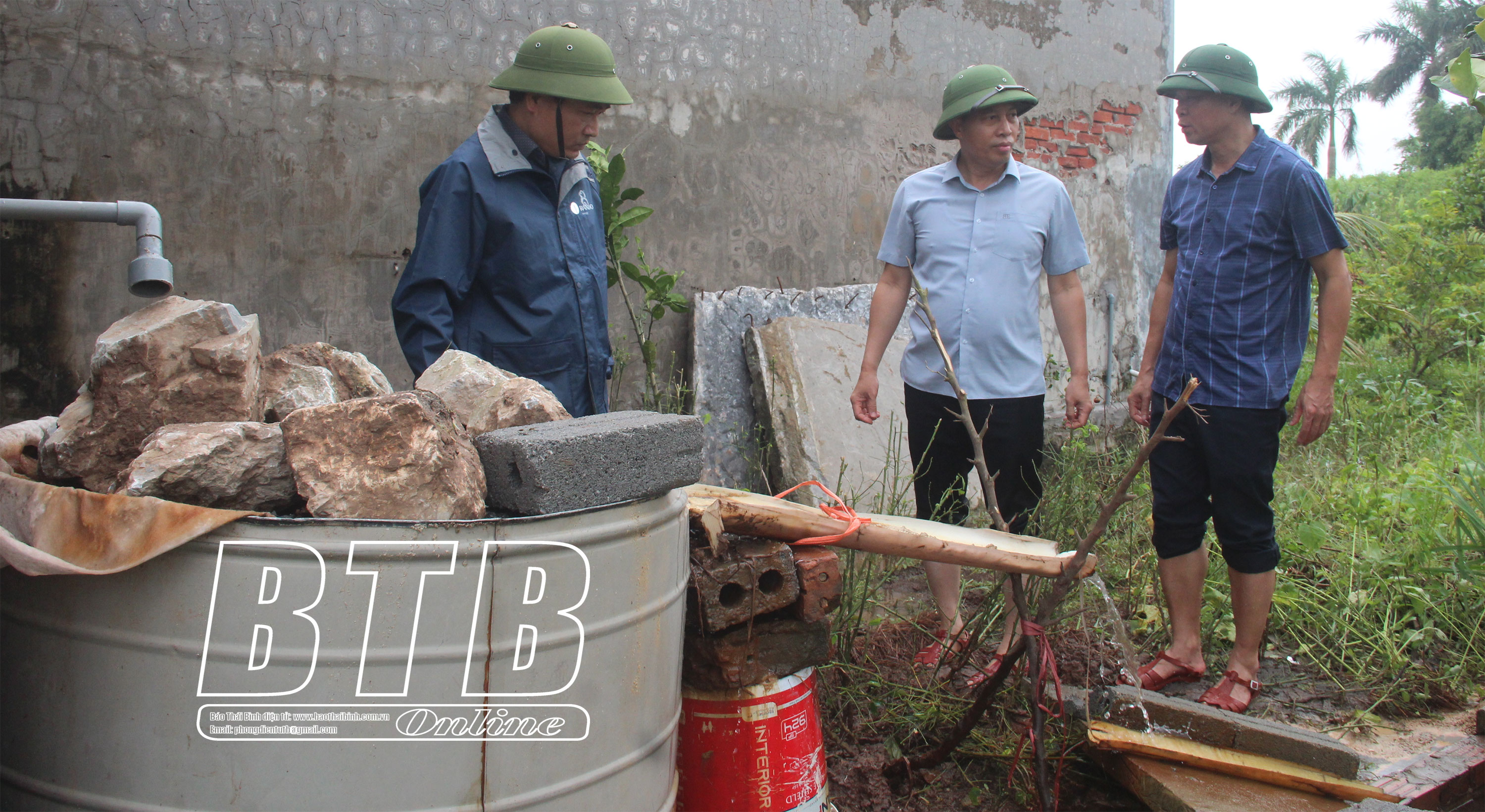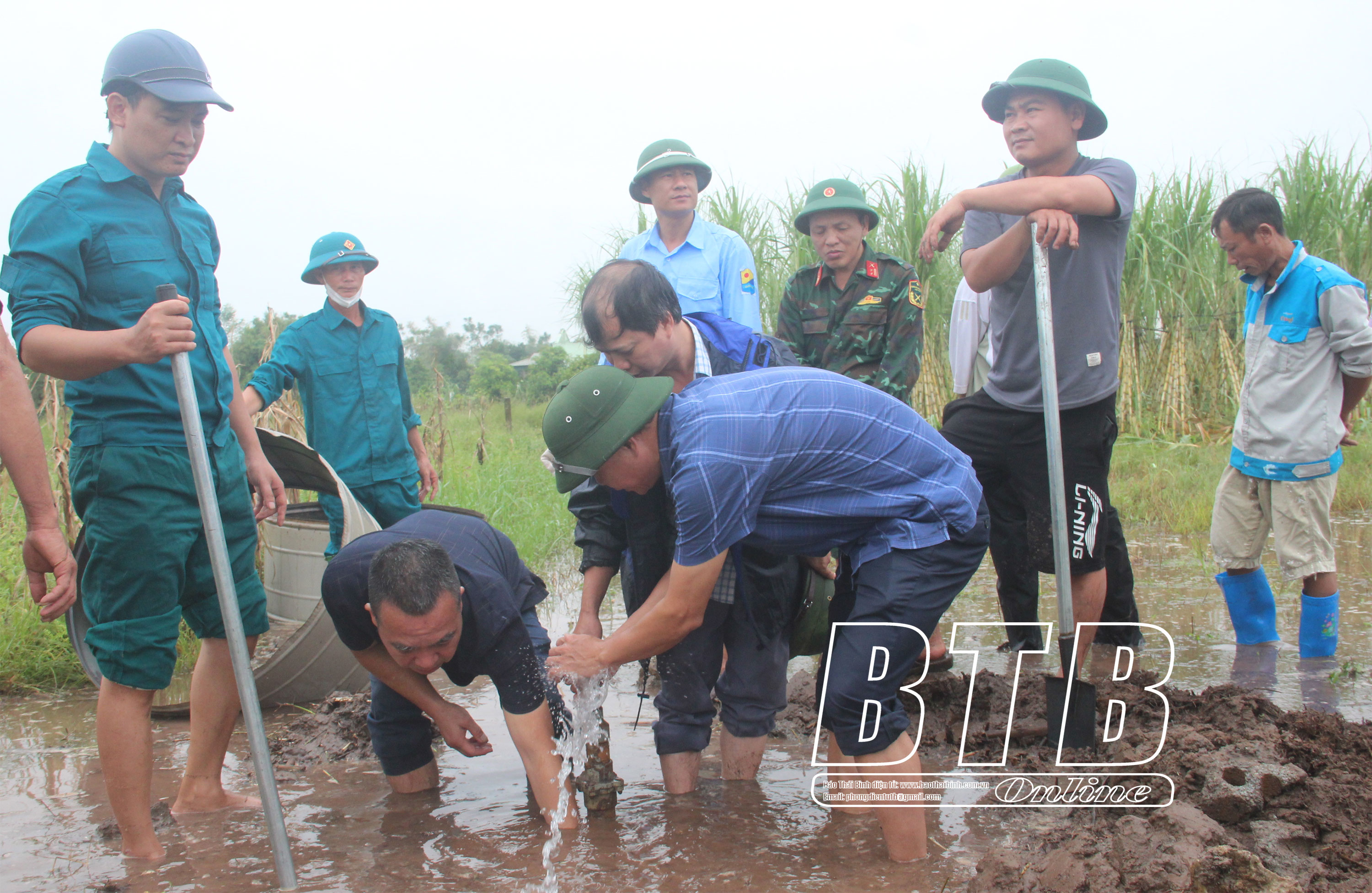 Sáng cùng ngày, đồng chí Lại Văn Hoàn, Phó Chủ tịch UBND tỉnh, Phó Trưởng ban thường trực Ban Chỉ huy PCTT và TKCN tỉnh đi kiểm tra, trực tiếp chỉ đạo công tác xử lý mạch sủi tại xã Minh Phú (Đông Hưng).