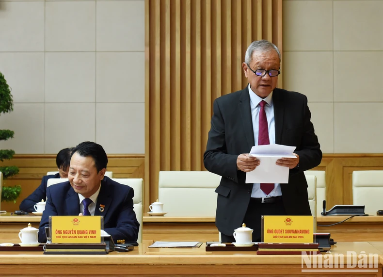 Chủ tịch Oudet Souvannavong cho biết, ASEAN BAC đã và đang nỗ lực để thúc đẩy hợp tác thương mại, đầu tư, hội nhập trong nội khối ASEAN và với các đối tác. Trọng tâm là hợp tác trong chuyển đổi số, phát triển xanh, bền vững; tự cường về y tế, lương thực. Đặc biệt là gắn kết chuỗi cung ứng trong các nước Mekong và Mekong mở rộng, trong đó có Lào-Việt Nam; đồng thời tăng cường hợp tác trong các lĩnh vực tài chính, cơ sở hạ tầng, chuyển đổi số.
