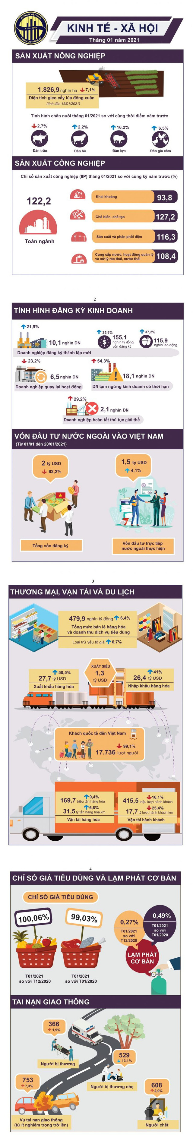 Tiếp đà năm 2020, bức tranh kinh tế - xã hội Việt Nam tháng đầu tiên năm 2021 nổi lên với rất nhiều điểm sáng.