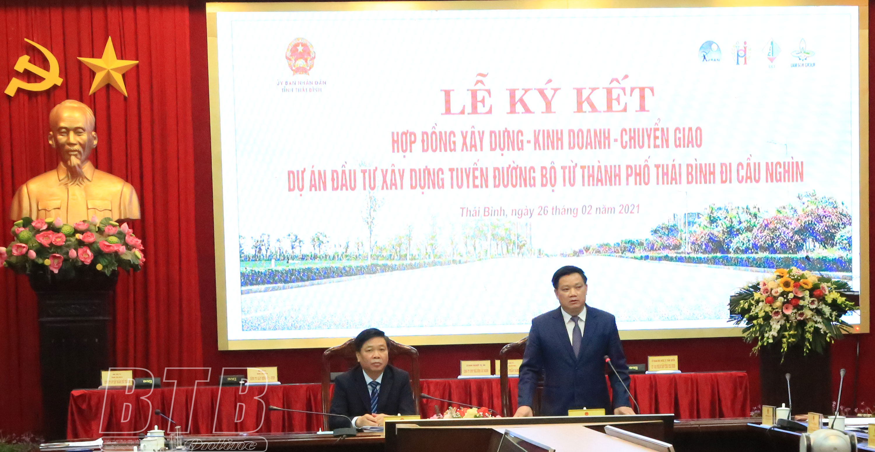 Sáng ngày 26/2, UBND tỉnh tổ chức lễ ký kết hợp đồng xây dựng - kinh doanh - chuyển giao dự án đầu tư xây dựng tuyến đường bộ từ thành phố Thái Bình đi cầu Nghìn với liên danh các nhà đầu tư: Tổng công ty Xây dựng số 1 - CTCP, Công ty Cổ phần Lam Sơn Thái Bình, Công ty Cổ phần Đam San, Công ty Cổ phần Tập đoàn Phú Thành và doanh nghiệp dự án là Công ty Cổ phần Đầu tư Thái Bình cầu Nghìn.