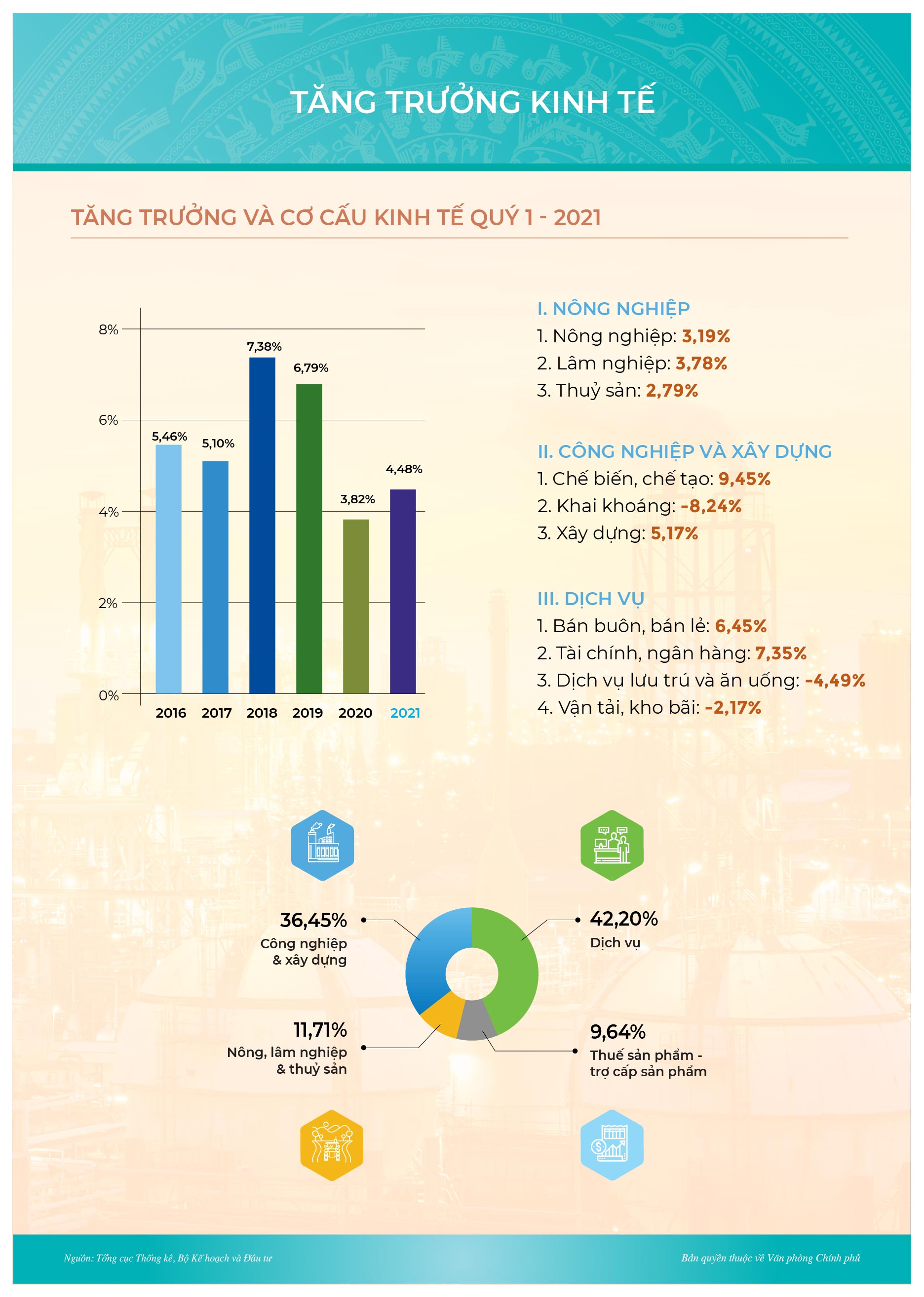Trong bối cảnh dịch Covid-19 vẫn còn diễn biến phức tạp trên thế giới với các biến thể mới nhưng bức tranh kinh tế – xã hội Việt Nam quý I/2021 tiếp tục duy trì ổn định và đạt được những kết quả tích cực trên các lĩnh vực.