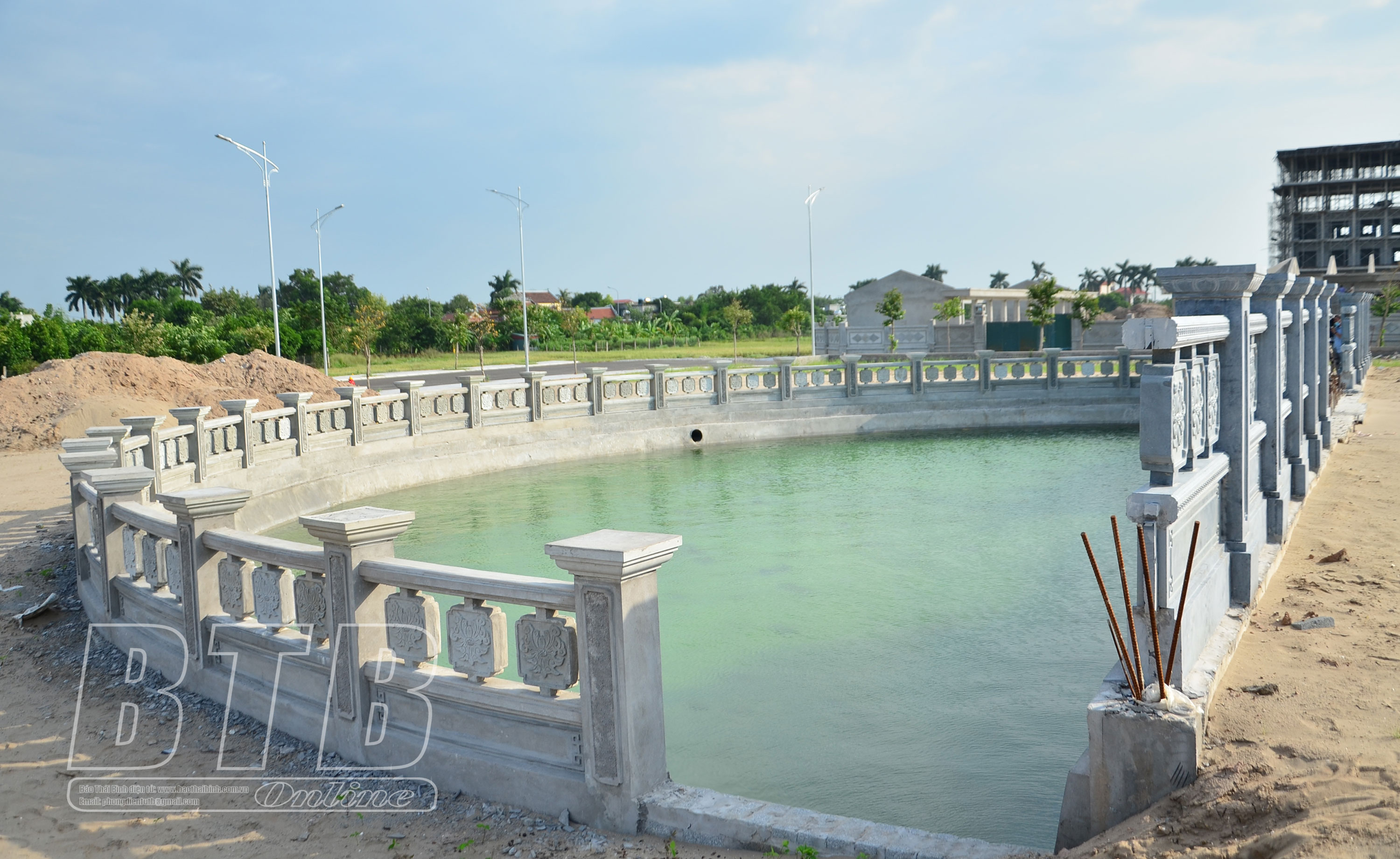 Hạng mục hồ bán nguyệt tại dự án đầu tư xây dựng Đền thờ Mẹ Việt Nam anh hùng tỉnh Thái Bình đã cơ bản thi công xong.