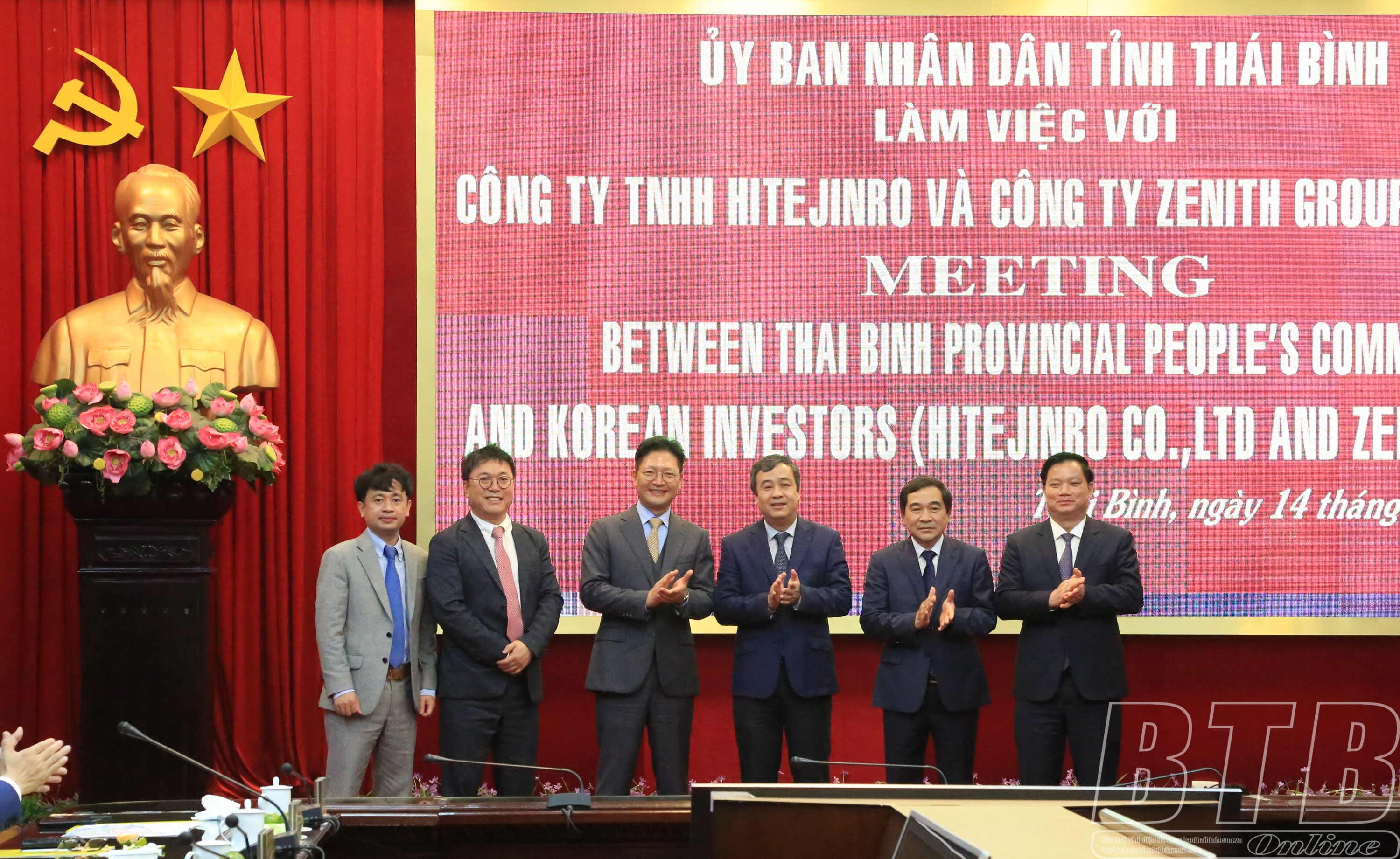 Đồng chí Bí thư Tỉnh ủy nhấn mạnh, trong làn sóng đầu tư vào Việt Nam, Thái Bình đã mở rộng cánh cửa chào đón các doanh nghiệp Hàn Quốc tới đầu tư bởi tỉnh có niềm tin và đánh giá rất cao về tiềm lực, năng lực đầu tư, khoa học, công nghệ trong sản xuất và hiệu quả đầu tư sản xuất, kinh doanh của doanh nghiệp Hàn Quốc. Khi HiteJinro và Zenith Group quyết định đầu tư vào Thái Bình sẽ được hỗ trợ tối đa về mọi mặt với cơ chế chính sách, môi trường đầu tư thông thoáng, thuận lợi nhất, đáp ứng mọi điều kiện để nhà đầu tư hài lòng khi quyết định đến Thái Bình hợp tác cùng phát triển.
