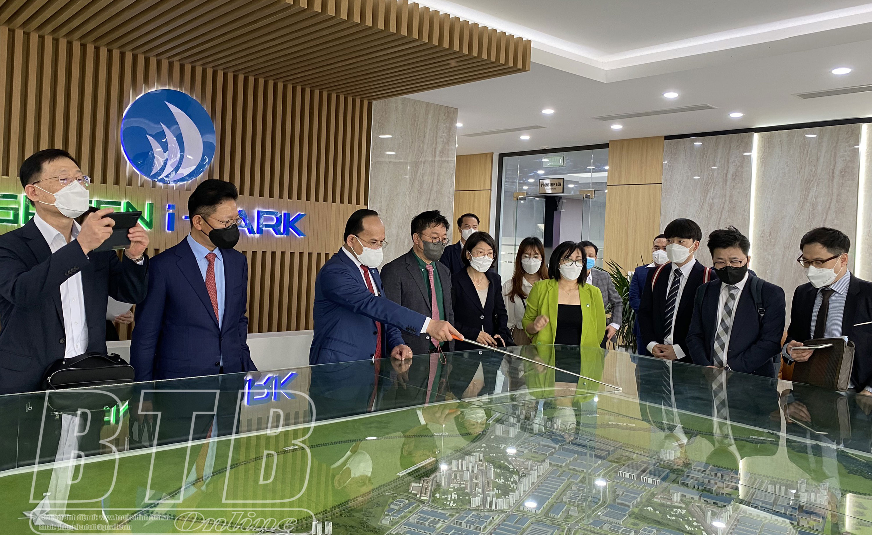 Lãnh đạo Công ty Cổ phần Green i-Park giới thiệu về khu công nghiệp Liên Hà Thái.