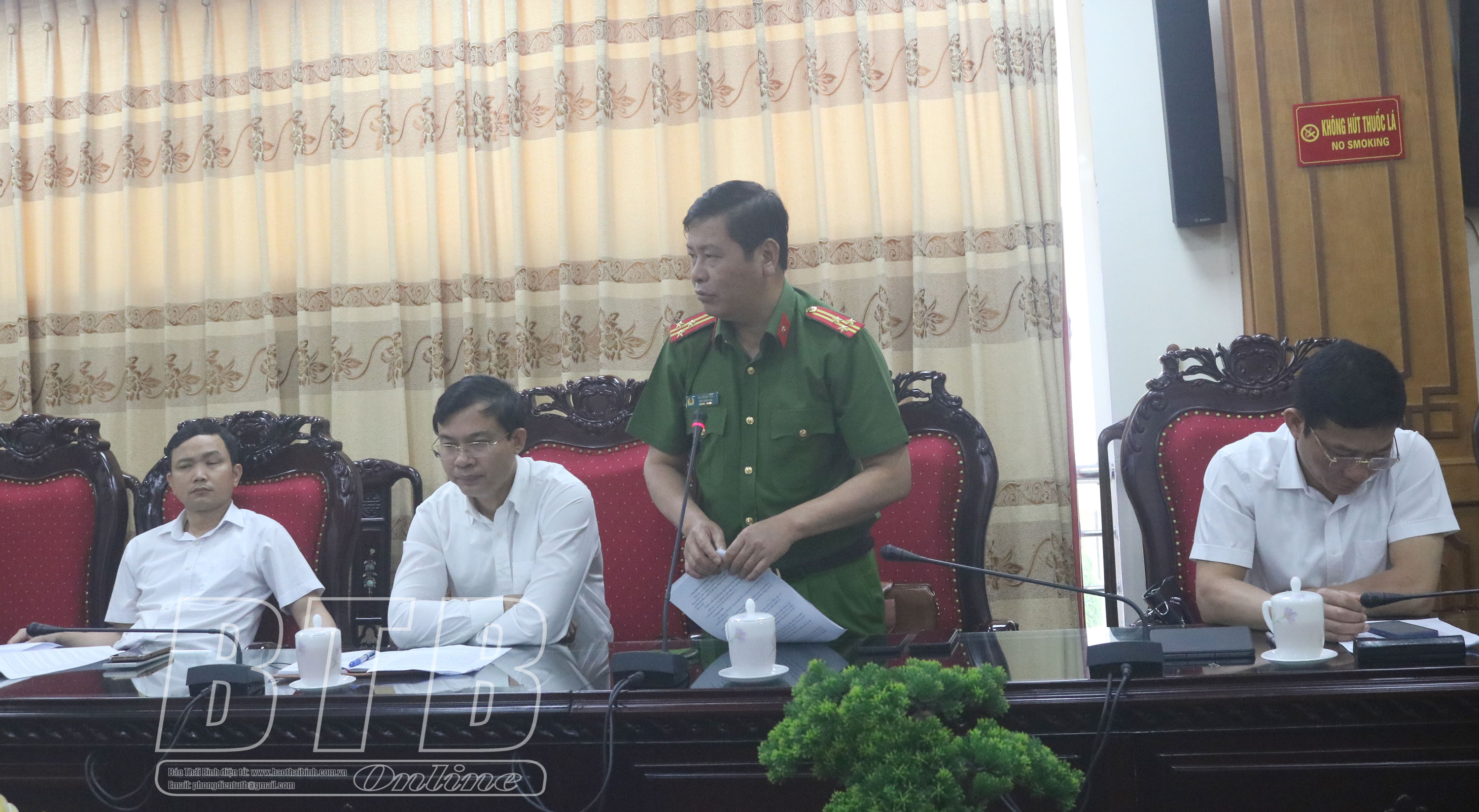 Lãnh đạo Công an tỉnh phát biểu tại cuộc họp.