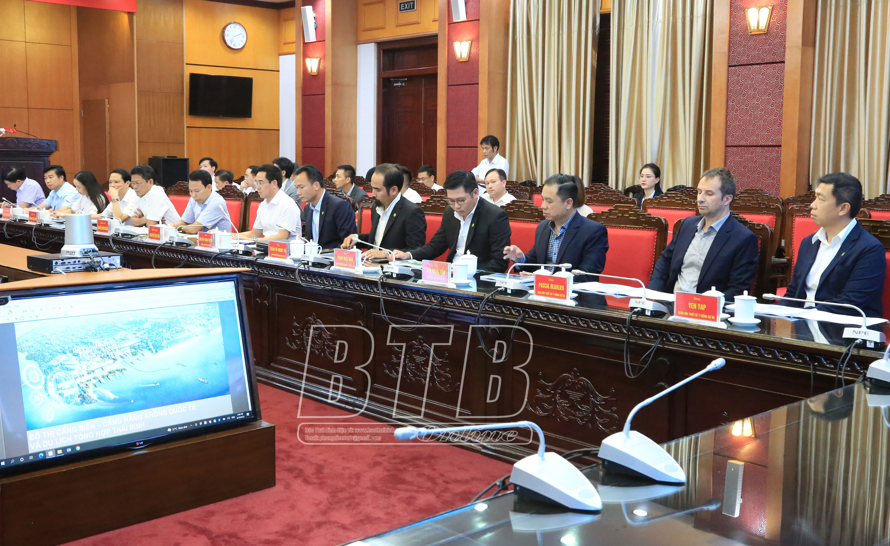 Kết luận buổi làm việc, đồng chí Ngô Đông Hải, Ủy viên Ban Chấp hành Trung ương Đảng, Bí thư Tỉnh ủy hoan nghênh và cảm ơn công ty đã quan tâm nghiên cứu để định hướng đầu tư vào tỉnh Thái Bình. Đồng chí ghi nhận và đánh giá cao các ý tưởng quy hoạch của công ty và mong công ty sẽ sớm có ý tưởng cụ thể để hiện thực hóa dự án trên địa bàn tỉnh. Đồng chí đề nghị UBND tỉnh và các sở, ngành quan tâm hỗ trợ, tạo điều kiện giúp công ty tiếp tục nghiên cứu cụ thể hóa các ý tưởng bảo đảm phù hợp với các quy hoạch khác của tỉnh để sớm tiến hành triển khai thực hiện các bước tiếp theo. Ngoài ra, đồng chí Bí thư Tỉnh ủy cũng gợi mở thêm các ý tưởng về quy hoạch, định hướng phát triển không gian để công ty nghiên cứu bổ sung vào ý tưởng chung.