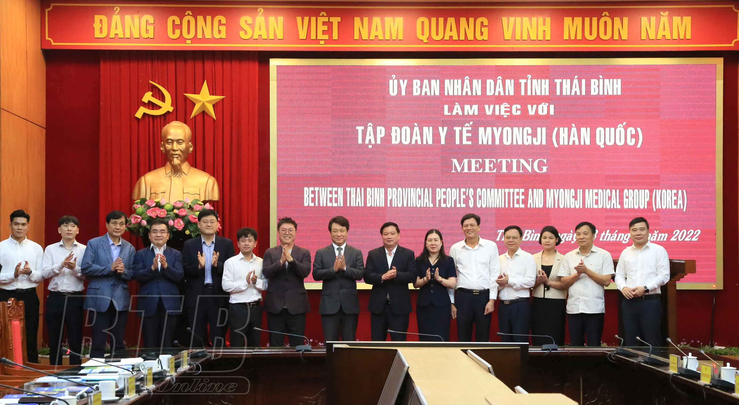Đánh giá cao sự quan tâm của Tập đoàn khi đến làm việc tại tỉnh, đồng chí Phó Bí thư Tỉnh ủy, Chủ tịch UBND tỉnh mong muốn Tập đoàn sẽ nghiên cứu, hợp tác đầu tư trong lĩnh vực y tế để Thái Bình hiện thực hóa mục tiêu đề ra, nâng cao mạng lưới y tế cơ sở; phát triển các dịch vụ y tế chuyên sâu; tập trung phát triển nguồn nhân lực, nòng cốt là Trường Đại học Y Dược Thái Bình và Trường Cao đẳng Y tế Thái Bình. Bên cạnh đó, Tập đoàn sẽ giới thiệu Thái Bình tới nhiều doanh nghiệp Hàn Quốc để Thái Bình trở thành điểm đến của các đầu tư.
