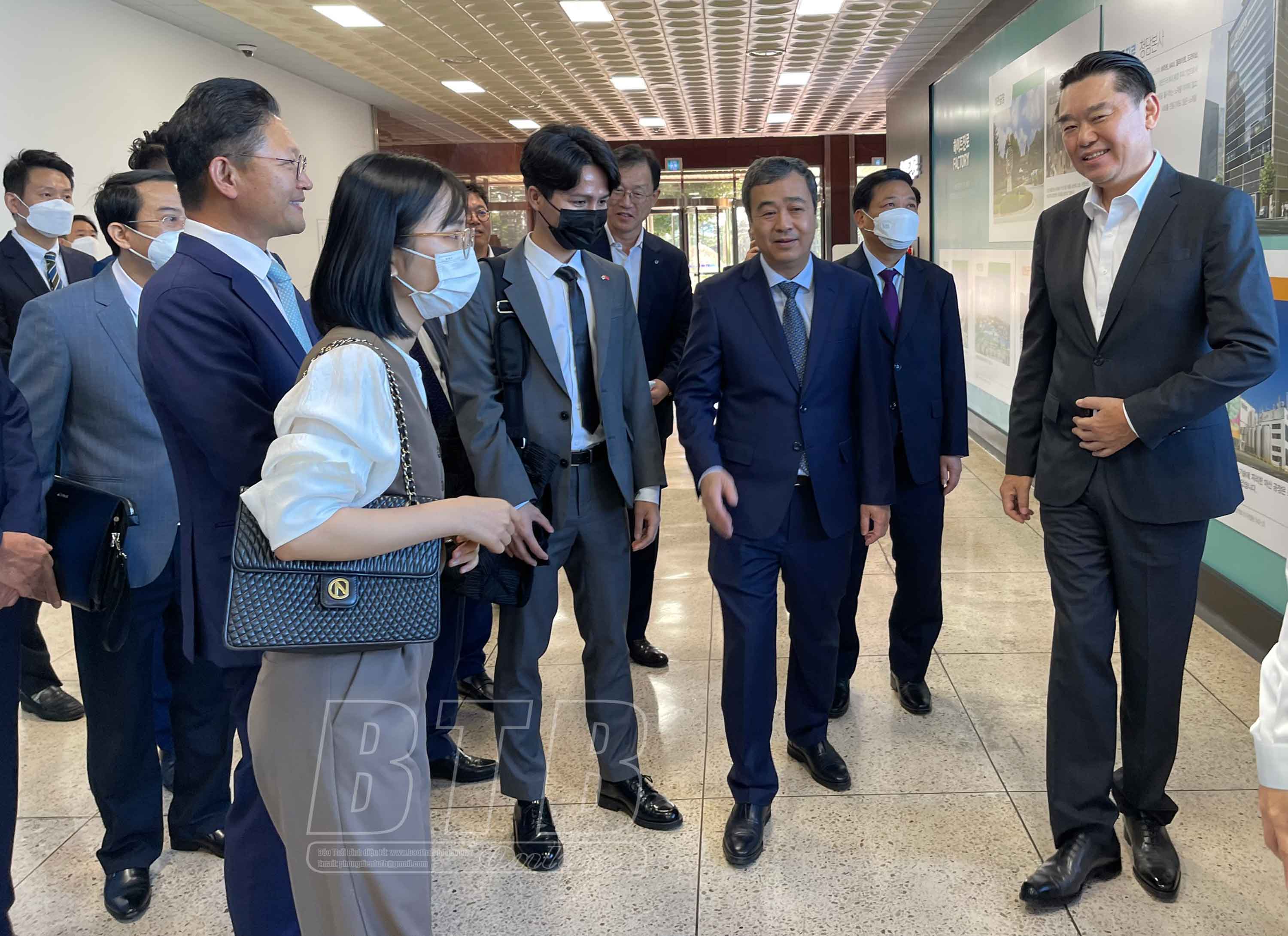 Đồng chí Ngô Đông Hải, Ủy viên Ban Chấp hành Trung ương Đảng, Bí thư Tỉnh ủy cùng đoàn công tác chụp ảnh lưu niệm tại Tập đoàn Hite - Jinro.