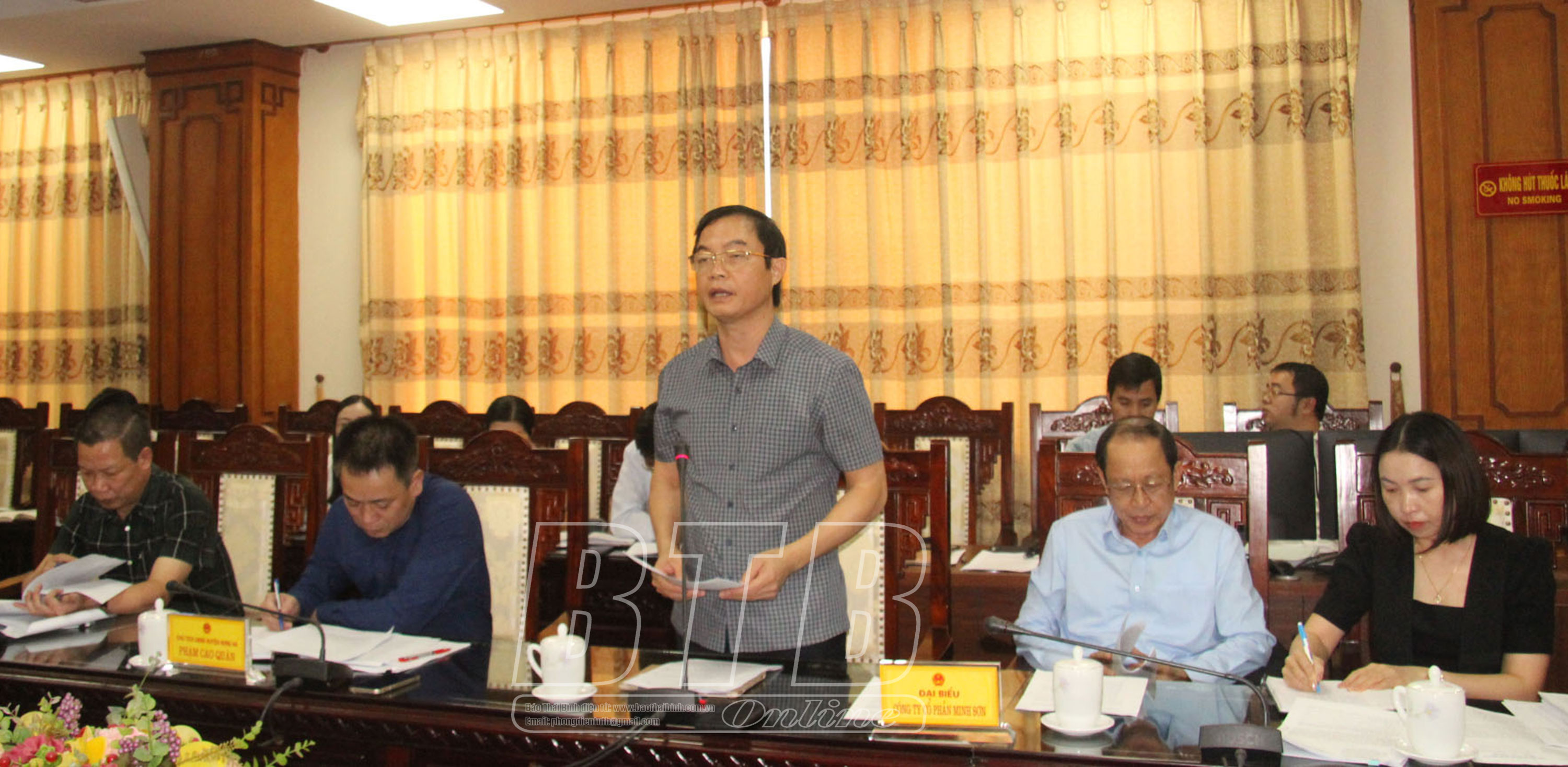 Lãnh đạo huyện Hưng Hà báo cáo tại cuộc họp.