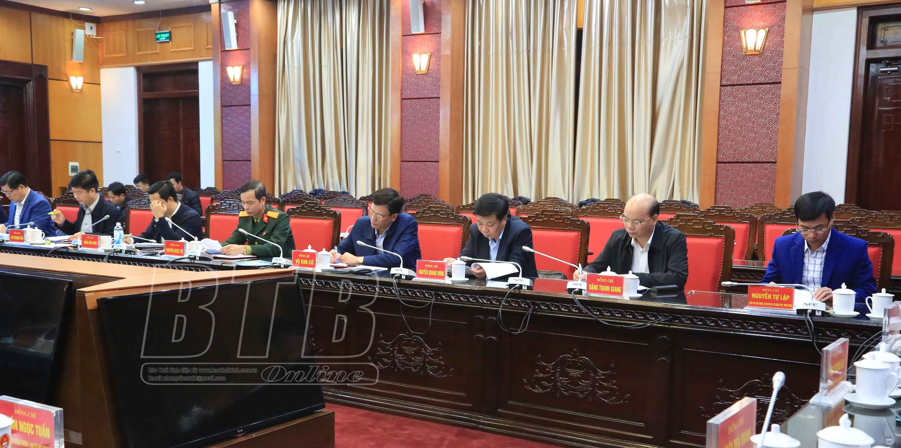 Các đồng chí: Ngô Đông Hải, Ủy viên Ban Chấp hành Trung ương Đảng, Bí thư Tỉnh ủy; Nguyễn Tiến Thành, Phó Bí thư thường trực Tỉnh ủy, Chủ tịch HĐND tỉnh; Nguyễn Khắc Thận, Phó Bí thư Tỉnh ủy, Chủ tịch UBND tỉnh chủ trì hội nghị. Các đồng chí Ủy viên Ban Thường vụ Tỉnh ủy; lãnh đạo các sở, ngành, địa phương liên quan dự hội nghị.