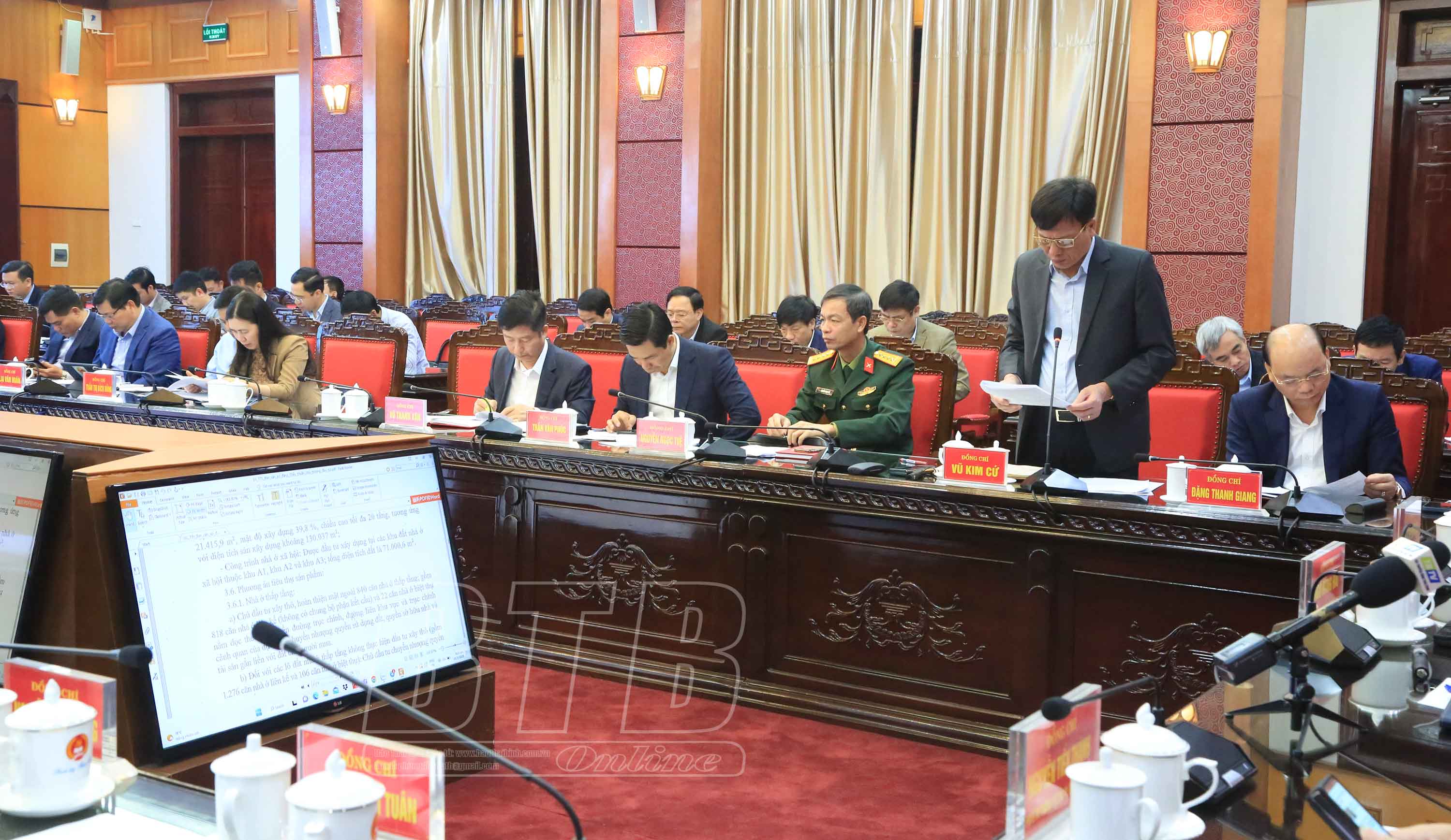 Các đồng chí: Ngô Đông Hải, Ủy viên Ban Chấp hành Trung ương Đảng, Bí thư Tỉnh ủy; Nguyễn Tiến Thành, Phó Bí thư thường trực Tỉnh ủy, Chủ tịch HĐND tỉnh; Nguyễn Khắc Thận, Phó Bí thư Tỉnh ủy, Chủ tịch UBND tỉnh chủ trì hội nghị.