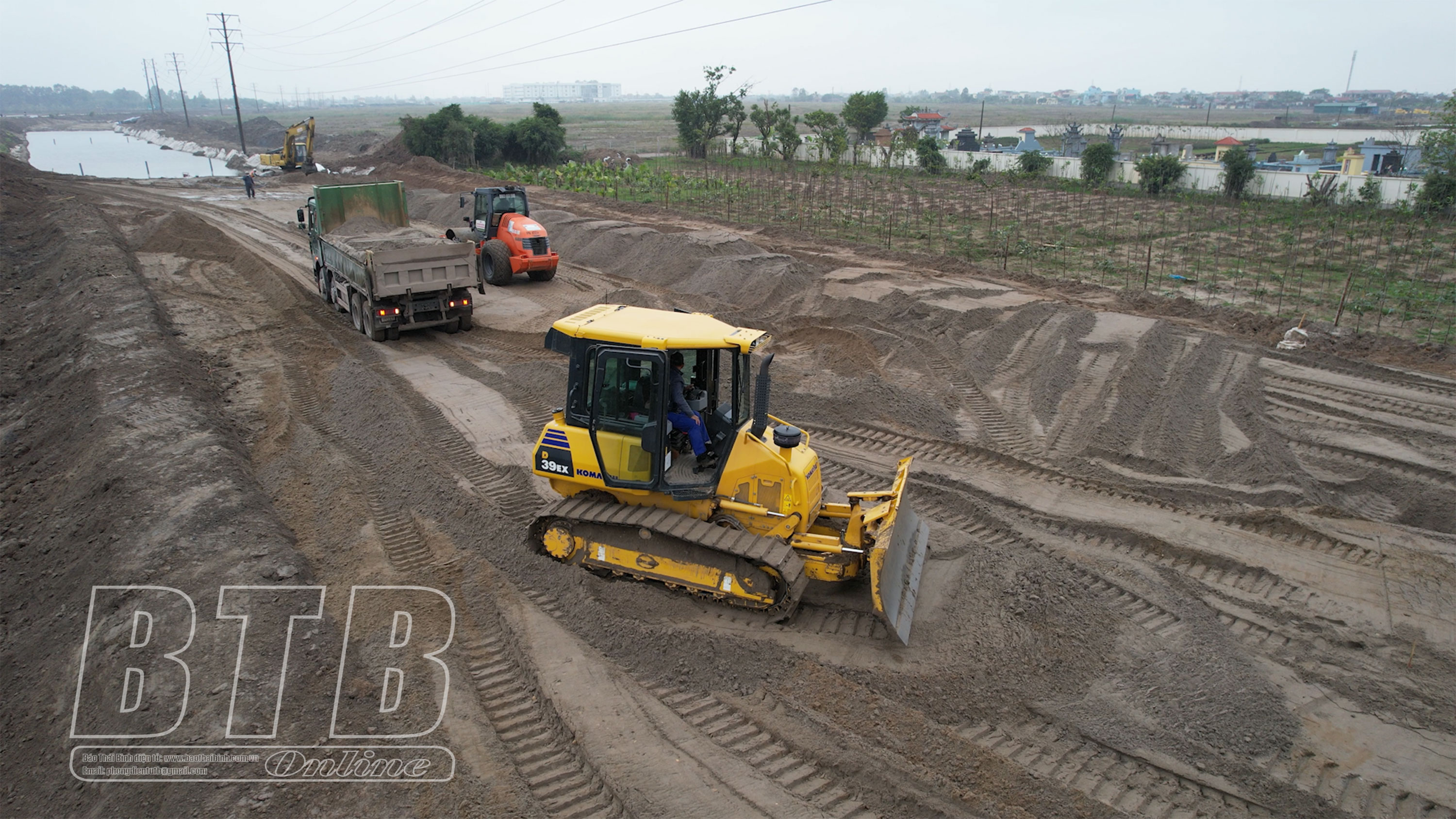 Thi công đào đắp nền đường tại tuyến số 3 đoạn qua địa phận xã Nam Hải (Tiền Hải).