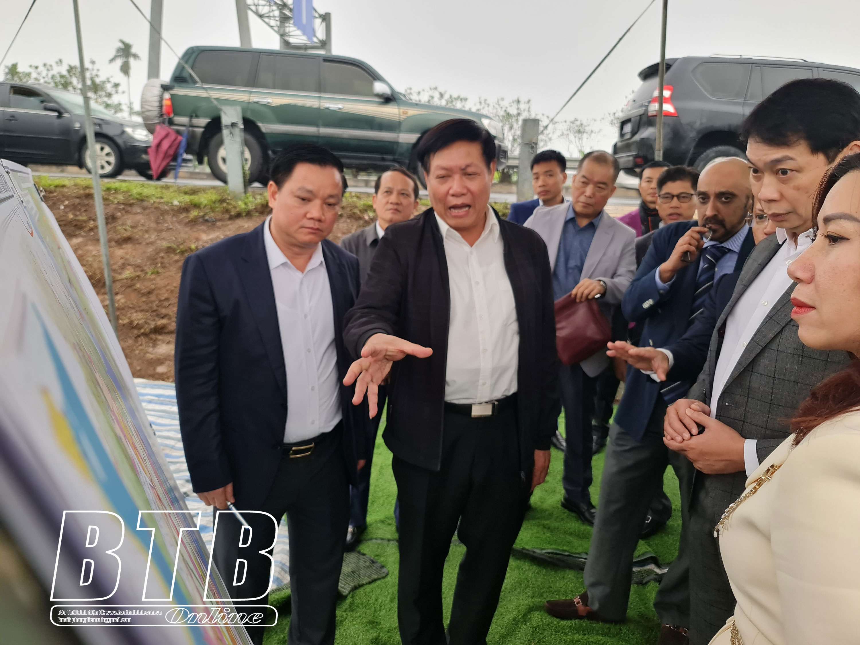 Trước đó, các đồng chí lãnh đạo Bộ Y tế, lãnh đạo Tỉnh ủy, HĐND, UBND tỉnh và liên danh các nhà đầu tư đã đi khảo sát thực địa tại vị trí quy hoạch KCN Dược – Sinh học tại xã Quỳnh Trang, huyện Quỳnh Phụ. Tại đây, lãnh đạo Bộ Y tế và liên danh các nhà đầu tư đều thống nhất đánh giá, KCN có ví trí rất thuận lợi về giao thông, diện tích lớn, việc giải phóng mặt bằng sẽ thuận lợi và có lợi thế lớn về nguồn nhân lực sẽ giúp nhà đầu tư triển khai đầu tư hạ tầng nhanh, thu hút được nhiều dự án thứ cấp vào hoạt động.
