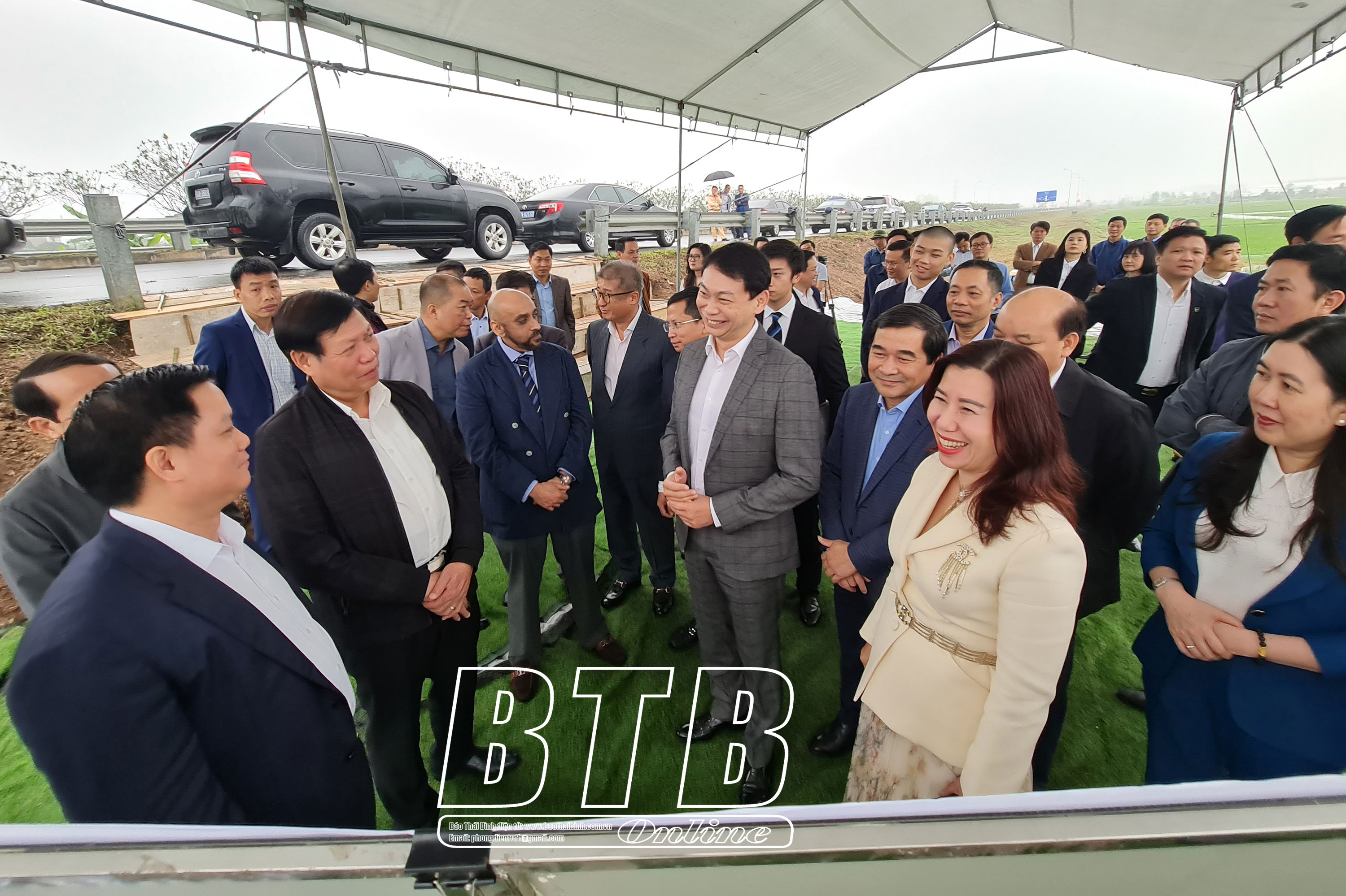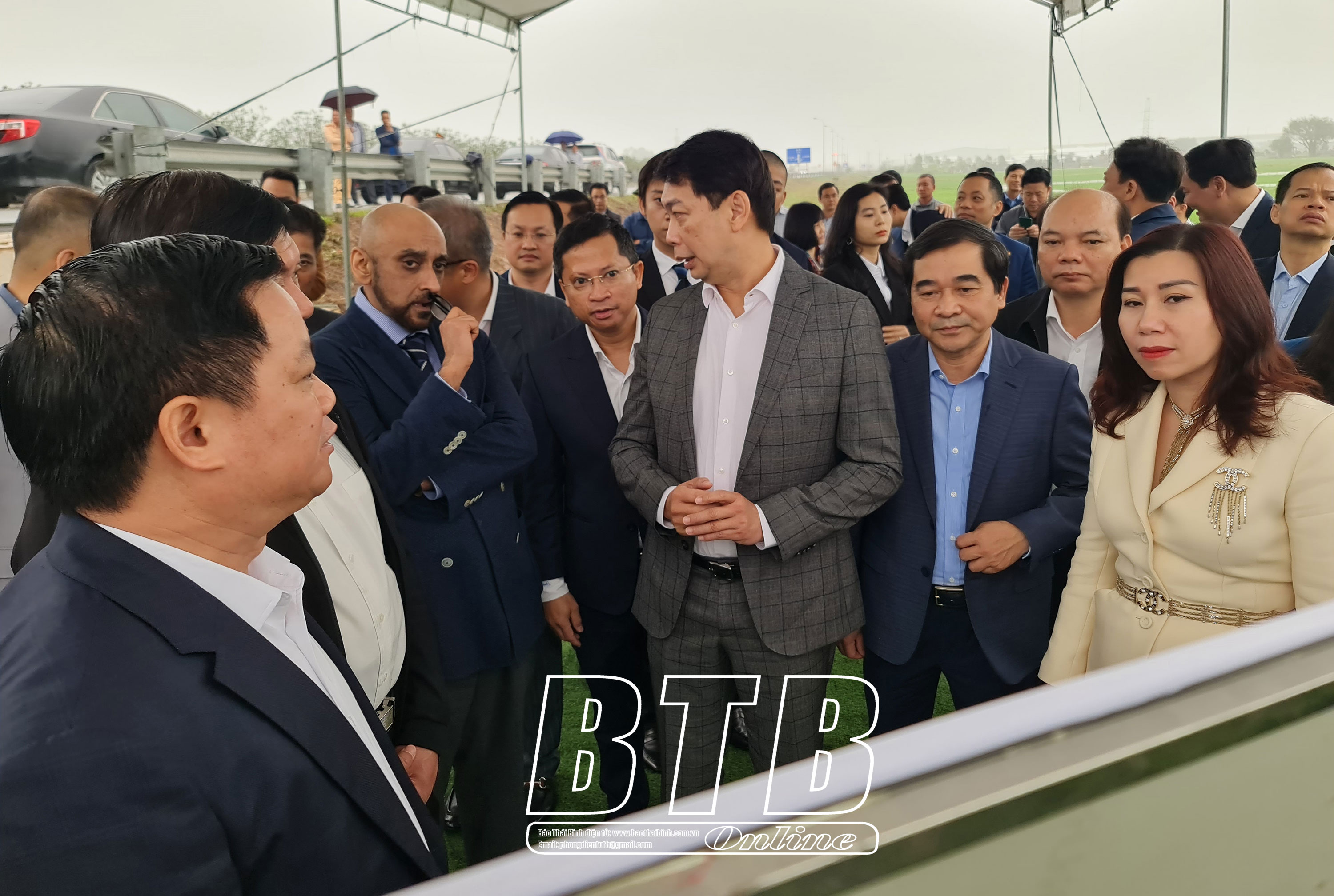 Đồng chí Nguyễn Tiến Thành, Phó Bí thư thường trực Tỉnh ủy, Chủ tịch HĐND tỉnh và đồng chí Nguyễn Khắc Thận, Phó Bí thư Tỉnh ủy, Chủ tịch UBND tỉnh chúc mừng các nhà đầu tư.