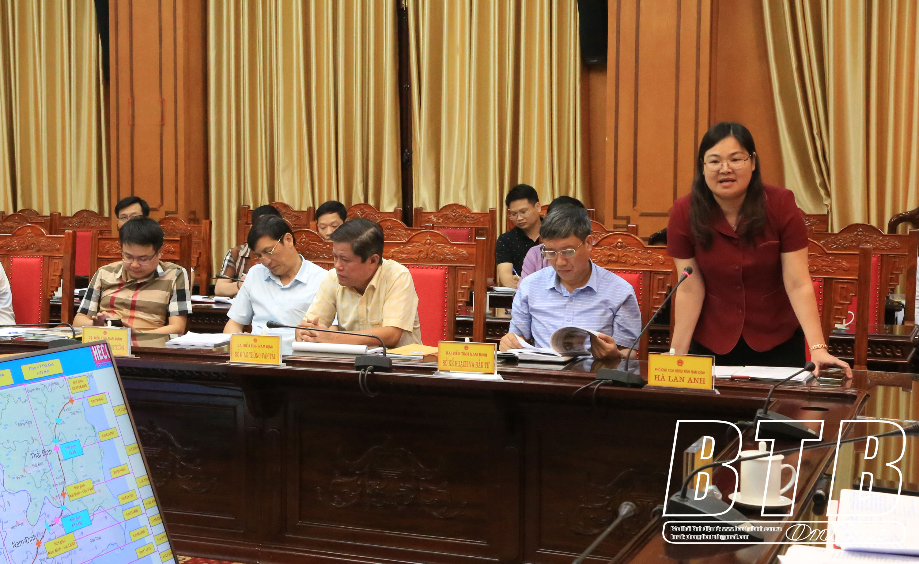 Đồng chí Hà Lan Anh, Tỉnh ủy viên, Phó Chủ tịch UBND tỉnh Nam Định phát biểu tại cuộc họp.