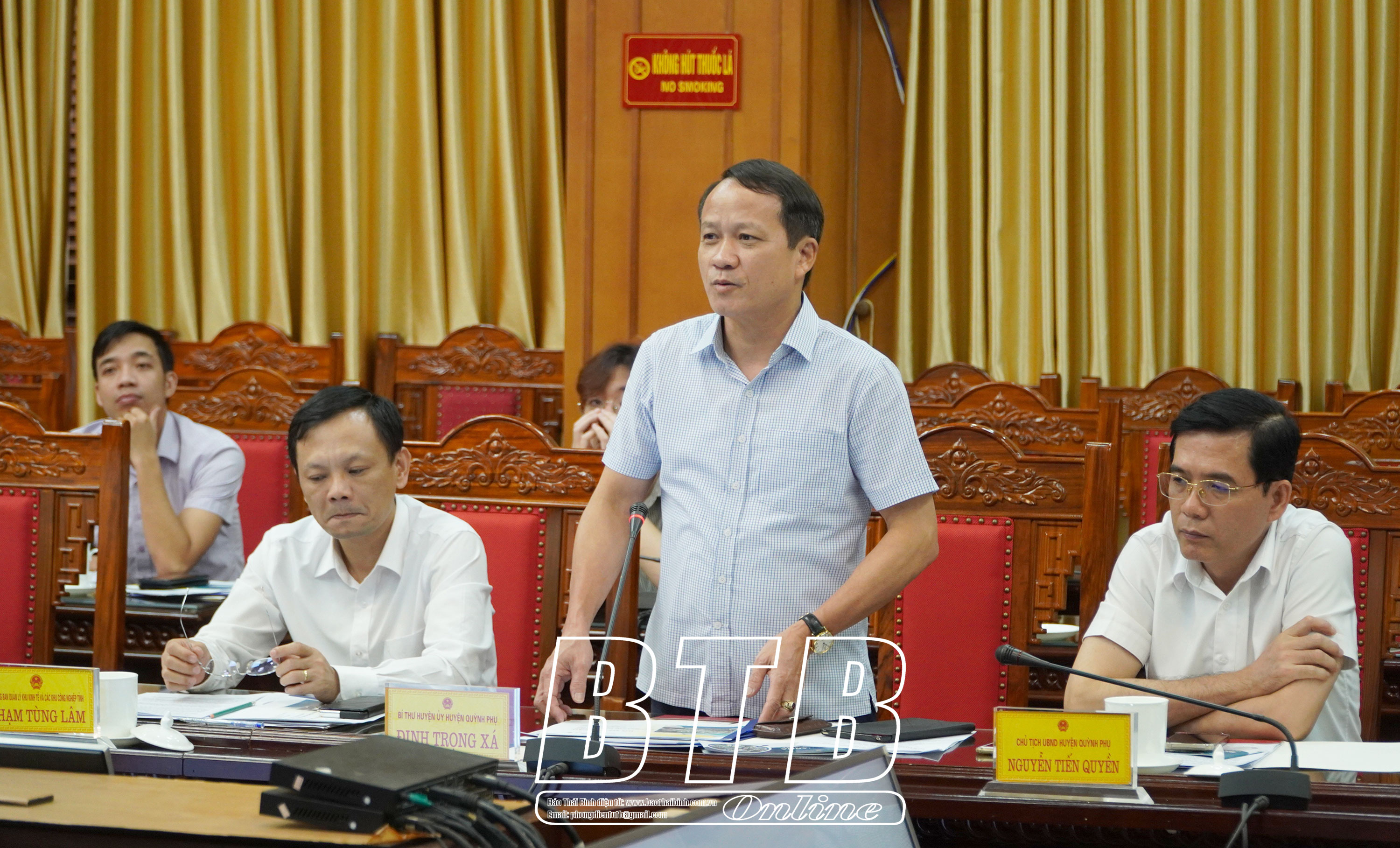 Lãnh đạo huyện Quỳnh Phụ phát biểu tại buổi làm việc.