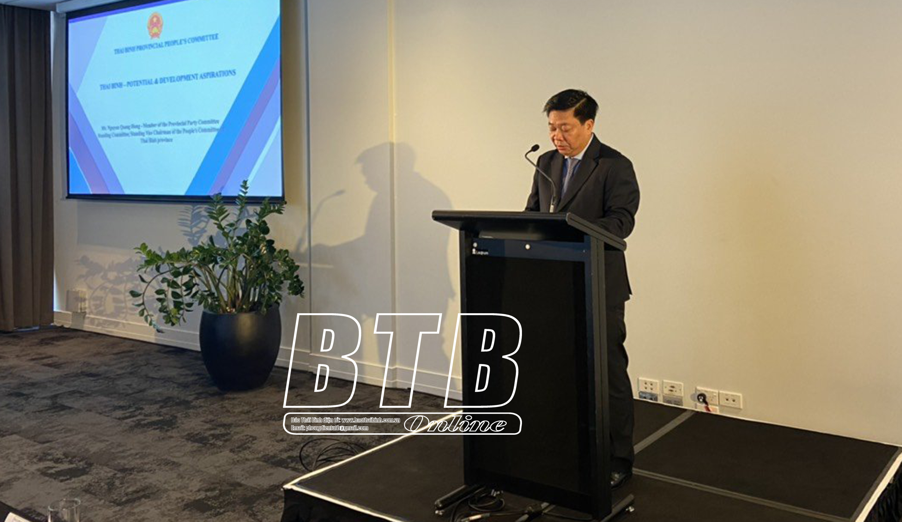 Phát biểu tại hội nghị, đồng chí Nguyễn Tiến Thành, Phó Bí thư thường trực Tỉnh ủy, Chủ tịch HĐND tỉnh khẳng định: Hội nghị xúc tiến giao thương, đầu tư vào tỉnh Thái Bình có ý nghĩa hết sức quan trọng, thể hiện sự quan tâm của các tổ chức, doanh nghiệp New Zealand đối với môi trường hợp tác, đầu tư, kinh doanh của tỉnh trên nhiều lĩnh vực. Đồng chí Phó Bí thư thường trực Tỉnh ủy, Chủ tịch HĐND tỉnh bày tỏ mong muốn sớm được đón các đối tác, doanh nghiệp New Zealand đến nghiên cứu, khảo sát, hợp tác, đầu tư, kinh doanh tại tỉnh; đồng thời, cam kết tỉnh sẽ đồng hành và tạo điều kiện thuận lợi nhất cho các nhà đầu tư trong quá trình thực hiện dự án tại Thái Bình. Đồng chí cũng bày tỏ tin tưởng mối quan hệ đối tác chiến lược sâu rộng giữa Việt Nam và New Zealand nói chung, quan hệ hợp tác giữa tỉnh Thái Bình và các đối New Zealand nói riêng ngày càng phát triển.