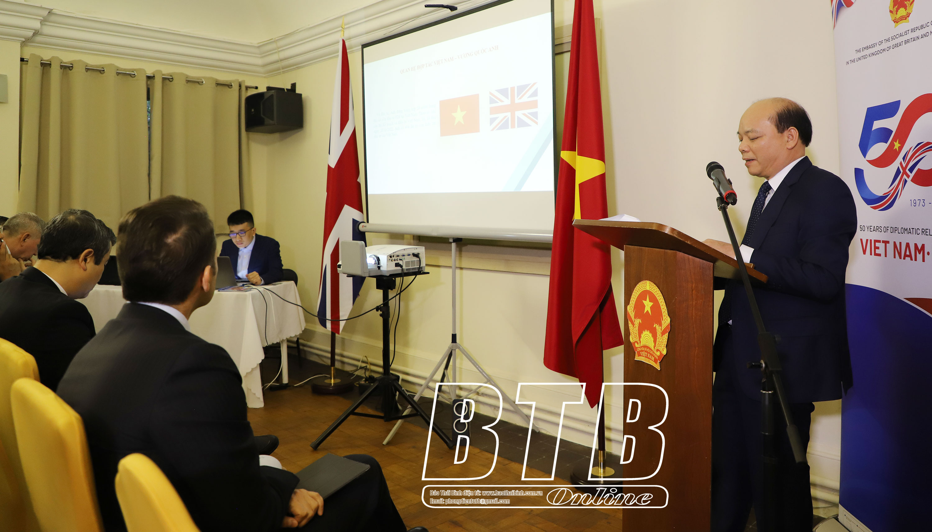 Phát biểu kết luận, đồng chí Ngô Đông Hải, Ủy viên Ban Chấp hành Trung ương Đảng, Bí thư Tỉnh ủy trân trọng cảm ơn sự hỗ trợ, giúp đỡ và hợp tác của Đại sứ quán Việt Nam tại Vương quốc Anh trong quá trình tổ chức hội nghị. Đồng chí cho biết đây là sự kiện xúc tiến đầu tư đầu tiên tại Vương quốc Anh của tỉnh Thái Bình nhằm cung cấp cho các nhà đầu tư tại Anh thông tin về Thái Bình - một tỉnh đang phát triển mạnh trong khu vực đồng bằng Bắc Bộ với môi trường đầu tư hấp dẫn, các chính sách ưu đãi đầu tư trong lĩnh vực công nghiệp, y tế, giáo dục, văn hóa… và sự ủng hộ của chính quyền địa phương đối với các nhà đầu tư nước ngoài nói chung, và doanh nghiệp Anh nói riêng.