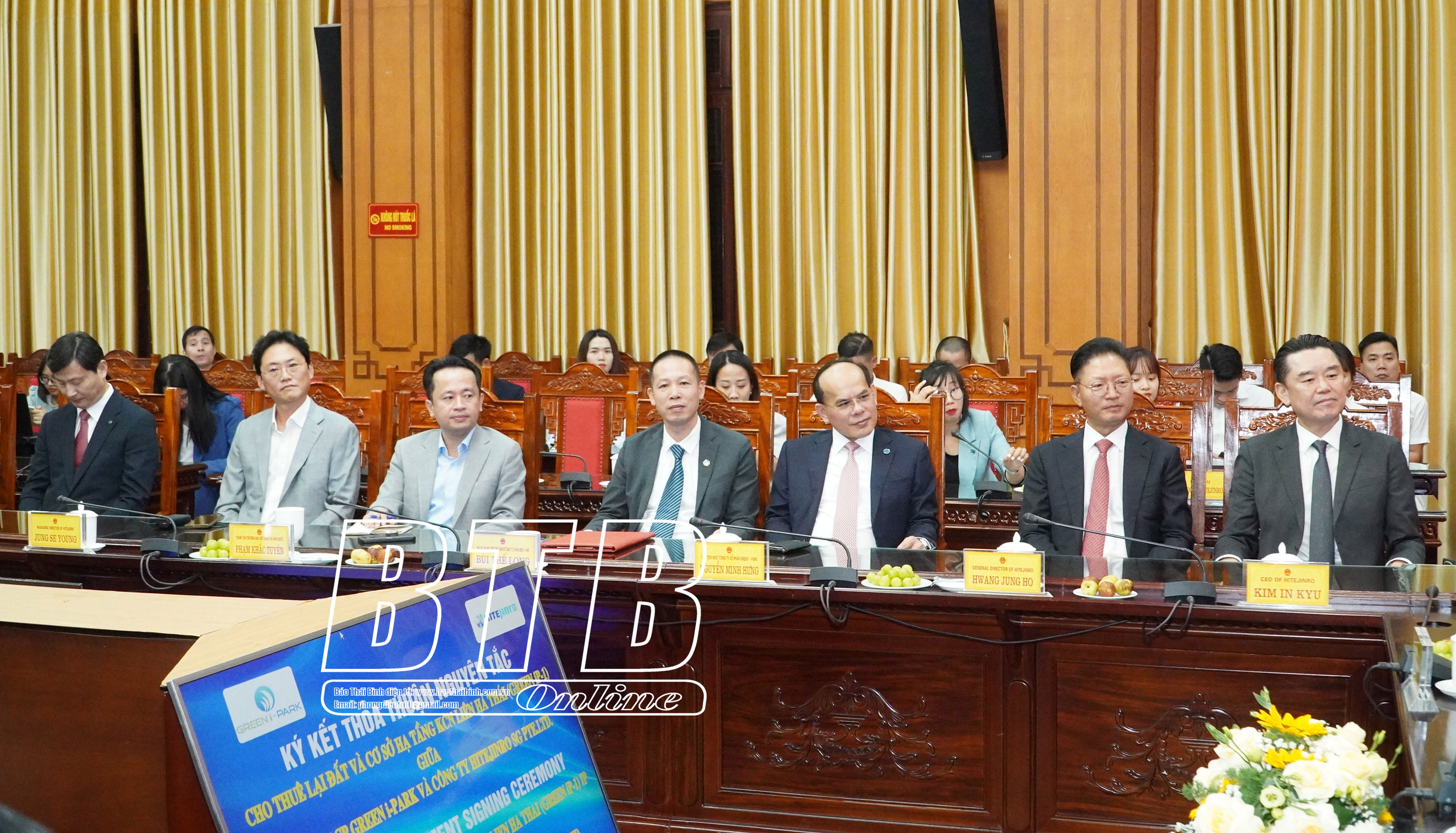 Các đồng chí lãnh đạo tỉnh và đại biểu chứng kiến ký kết hợp tác đầu tư giữa Công ty Cổ phần Green i-Park và Tập đoàn HiteJinro.