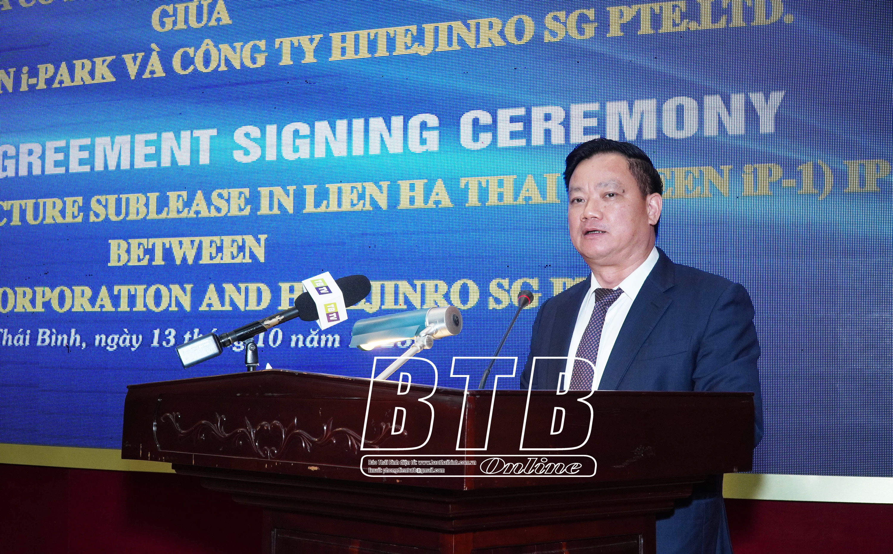 Phát biểu tại lễ ký kết, đồng chí Phó Bí thư Tỉnh ủy, Chủ tịch UBND tỉnh chúc mừng sự khởi đầu hợp tác giữa hai nhà đầu tư Green i-Park và HiteJinro và tin tưởng cả hai sẽ gặt hái được nhiều thành công trong thời gian tới. Đồng chí cũng bày tỏ ấn tượng với quy mô, sự phát triển của Tập đoàn, ghi nhận sự thiện chí, hiệu quả trong quá trình đàm phán, xúc tiến đầu tư giữa Công ty Cổ phần Green i-Park và Tập đoàn HiteJinro. UBND tỉnh đánh giá cao uy tín, năng lực đầu tư và công nghệ sản xuất của Hite Jinro và dự án sẽ đầu tư tại Thái Bình. Có ý nghĩa hơn, đây là dự án đầu tiên HiteJinro đầu tư ở Việt Nam và lựa chọn Thái Bình để đặt dự án nhà máy sản xuất đã thể hiện sự tìm hiểu kỹ lưỡng của nhà đầu tư cũng như khẳng định môi trường đầu tư kinh doanh hấp dẫn của tỉnh; hy vọng, sự có mặt của HiteJinro sẽ truyền cảm hứng hơn nữa cho các nhà đầu tư lớn của Hàn Quốc lựa chọn Thái Bình là điểm đến đầu tư ở nước ngoài.