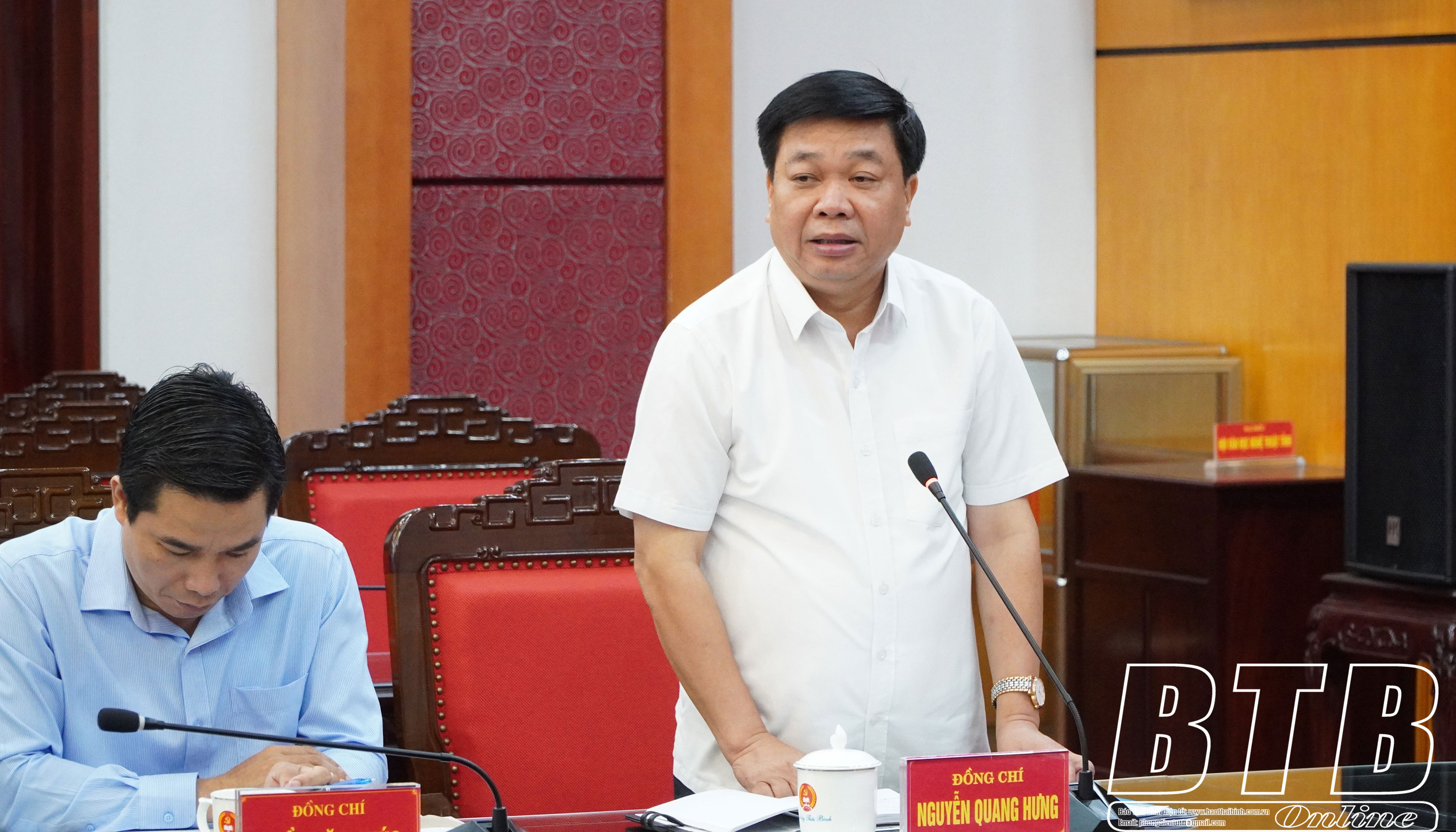 Đồng chí Nguyễn Quang Hưng, Ủy viên Ban Thường vụ Tỉnh ủy, Phó Chủ tịch thường trực UBND tỉnh phát biểu tại hội nghị.
