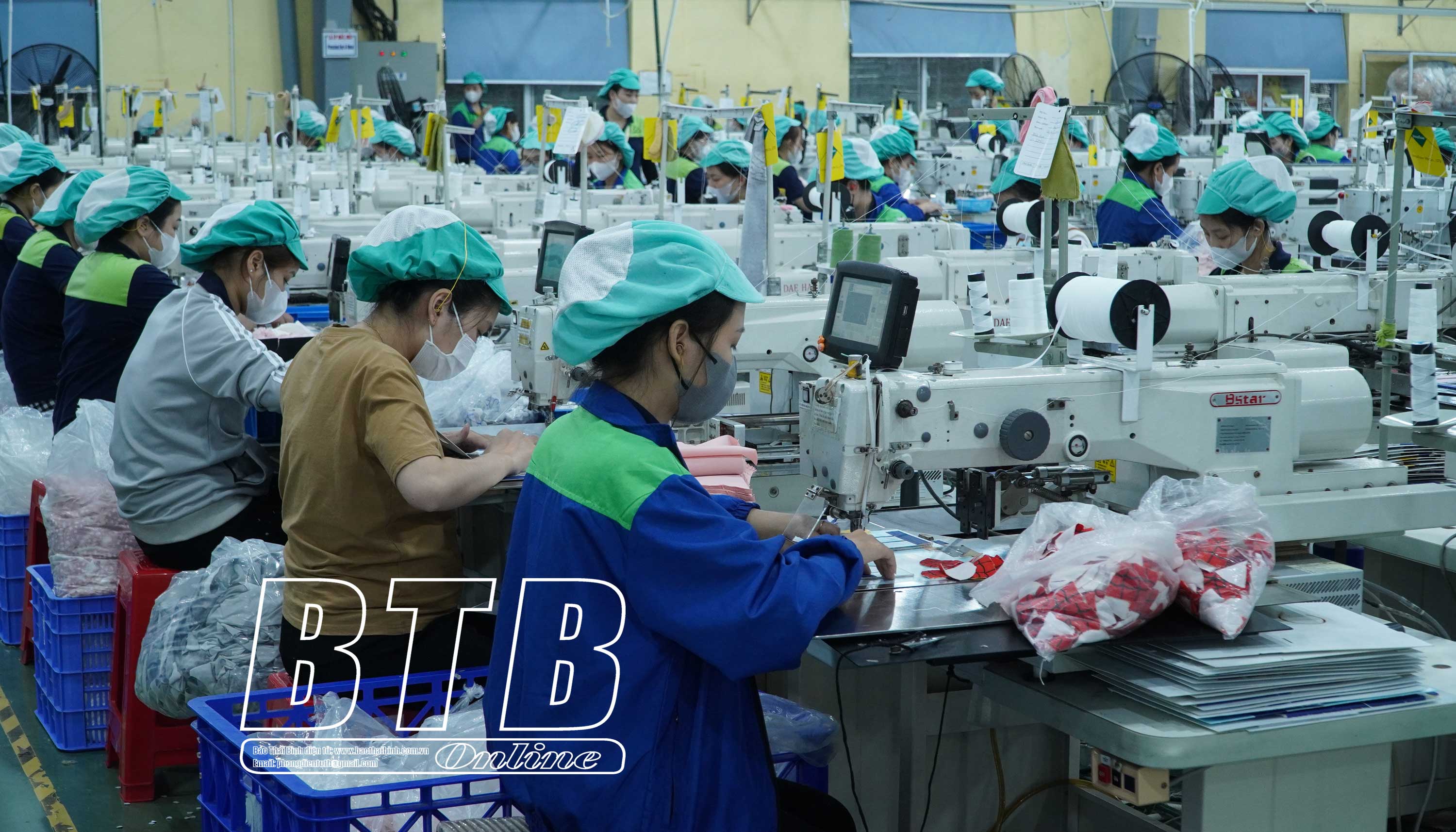 Sản xuất tại Công ty TNHH Bảo hộ lao động Lan Phú (cụm công nghiệp Đông La, Đông Hưng).