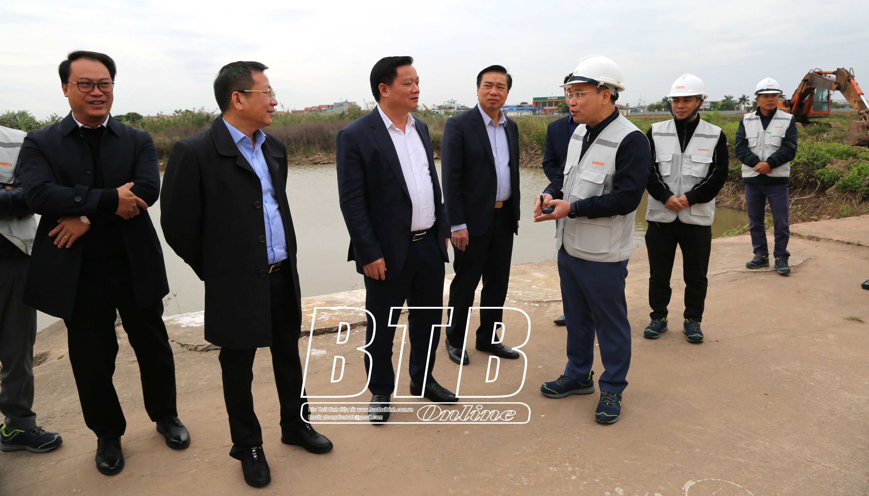 Đồng chí Nguyễn Khắc Thận, Phó Bí thư Tỉnh ủy, Chủ tịch UBND tỉnh chỉ đạo đẩy nhanh tiến độ thi công xây dựng hạ tầng cụm công nghiệp Hưng Nhân mở rộng.
