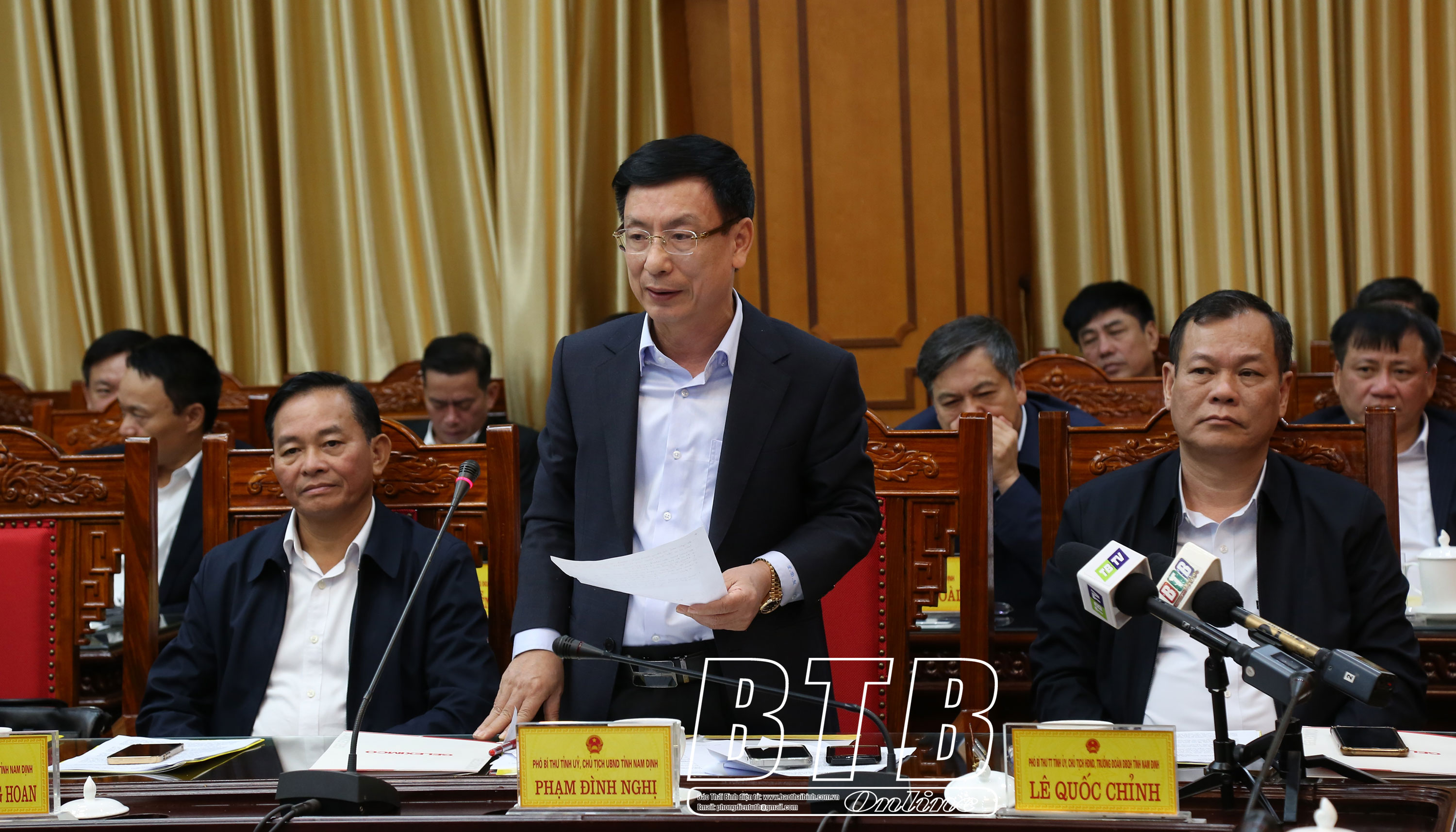 Dự hội nghị về phía tỉnh Nam Định có các đồng chí: Phạm Gia Túc, Ủy viên Ban Chấp hành Trung ương Đảng, Bí thư Tỉnh ủy; Lê Quốc Chỉnh, Phó Bí thư Thường trực Tỉnh ủy, Chủ tịch HĐND tỉnh, Trưởng đoàn đại biểu Quốc hội tỉnh; Phạm Đình Nghị, Phó Bí thư Tỉnh ủy, Chủ tịch UBND tỉnh; các đồng chí Ủy viên Ban Thường vụ Tỉnh ủy, lãnh đạo HĐND, UBND tỉnh, Đoàn đại biểu Quốc hội tỉnh.