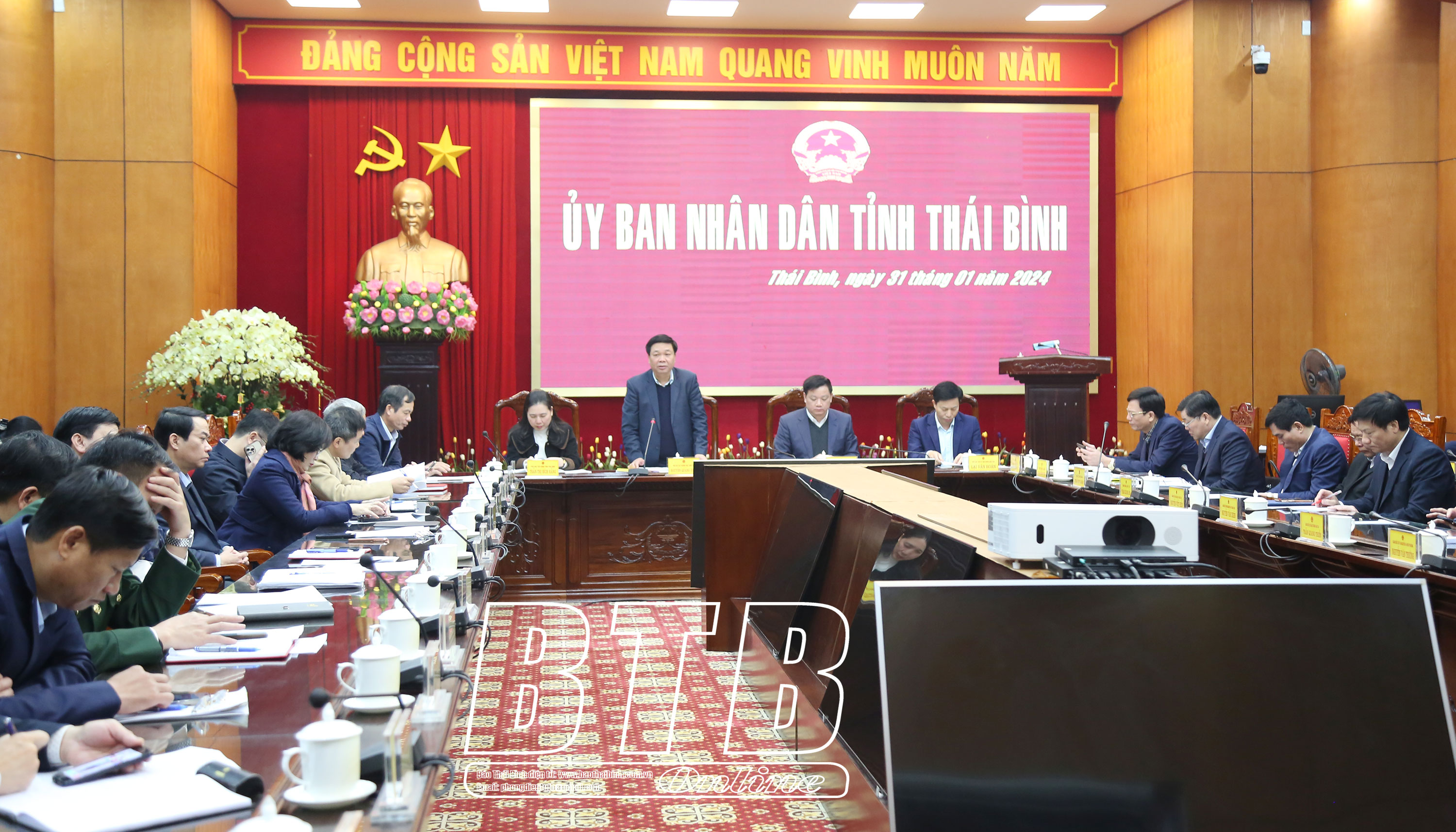 Đến nay, các địa phương đã thu hoạch 91% diện tích cây vụ đông, trồng 4.260ha cây màu xuân, đồng thời gieo hơn 460ha mạ xuân tập trung tại các huyện Đông Hưng, Hưng Hà, Thái Thụy. Hoạt động chăn nuôi gia súc, gia cầm, nuôi trồng, khai thác thủy sản ổn định. Sản xuất công nghiệp phục hồi và tăng trưởng cao với chỉ số sản xuất công nghiệp tháng 1/2024 tăng 38,3% so với cùng kỳ năm 2023, giá trị sản xuất công nghiệp ước đạt 8.450 tỷ đồng, tăng 31,9% so với cùng kỳ năm 2023. Tỉnh đã chỉ đạo rà soát, hoàn thiện hồ sơ quy hoạch tỉnh bảo đảm phù hợp và thống nhất với Quyết định số 1735/QĐ-TTg của Thủ tướng Chính phủ về việc phê duyệt quy hoạch tỉnh Thái Bình thời kỳ 2021 - 2030, tầm nhìn đến năm 2050; thành lập Ban Chỉ đạo và ban hành kế hoạch triển khai thực hiện dự án đầu tư cao tốc Ninh Bình - Hải Phòng (CT.08). Hoạt động thương mại, dịch vụ duy trì ổn định với tổng mức bán lẻ hàng hóa và doanh thu dịch vụ tháng 1/2024 ước đạt 6.466 tỷ đồng, tăng 8,1% so với cùng kỳ năm 2023. Trong tháng1/2024, tỉnh đã chấp thuận, điều chỉnh chủ trương đầu tư cho 8 dự án với tổng vốn đăng ký mới và tăng thêm hơn 2.900 tỷ đồng, vốn đầu tư FDI đạt trên 101 triệu USD. Công tác điều hành ngân sách được chỉ đạo thực hiện quyết liệt, tổng thu ngân sách nhà nước tháng 1/2024 ước thực hiện 1.470 tỷ đồng, đạt 7,5% dự toán, trong đó thu nội địa ước thực hiện hơn 600 tỷ đồng, đạt 7% dự toán; tổng chi ngân sách địa phương ước thực hiện hơn 1.260 tỷ đồng, đạt 7% dự toán. Tình hình việc làm của người lao động duy trì ổn định, công tác an toàn lao động tại các doanh nghiệp được tăng cường; các hoạt động thăm, tặng quà đối với người có công với cách mạng, người cao tuổi, hộ nghèo, đối tượng bảo trợ xã hội và trẻ em có hoàn cảnh đặc biệt khó khăn nhân dịp tết Nguyên đán Giáp Thìn được thực hiện kịp thời. Công tác cải cách hành chính, xây dựng chính quyền được chú trọng thực hiện. Tình hình quốc phòng, an ninh chính trị, trật tự an toàn xã hội giữ vững ổn định.