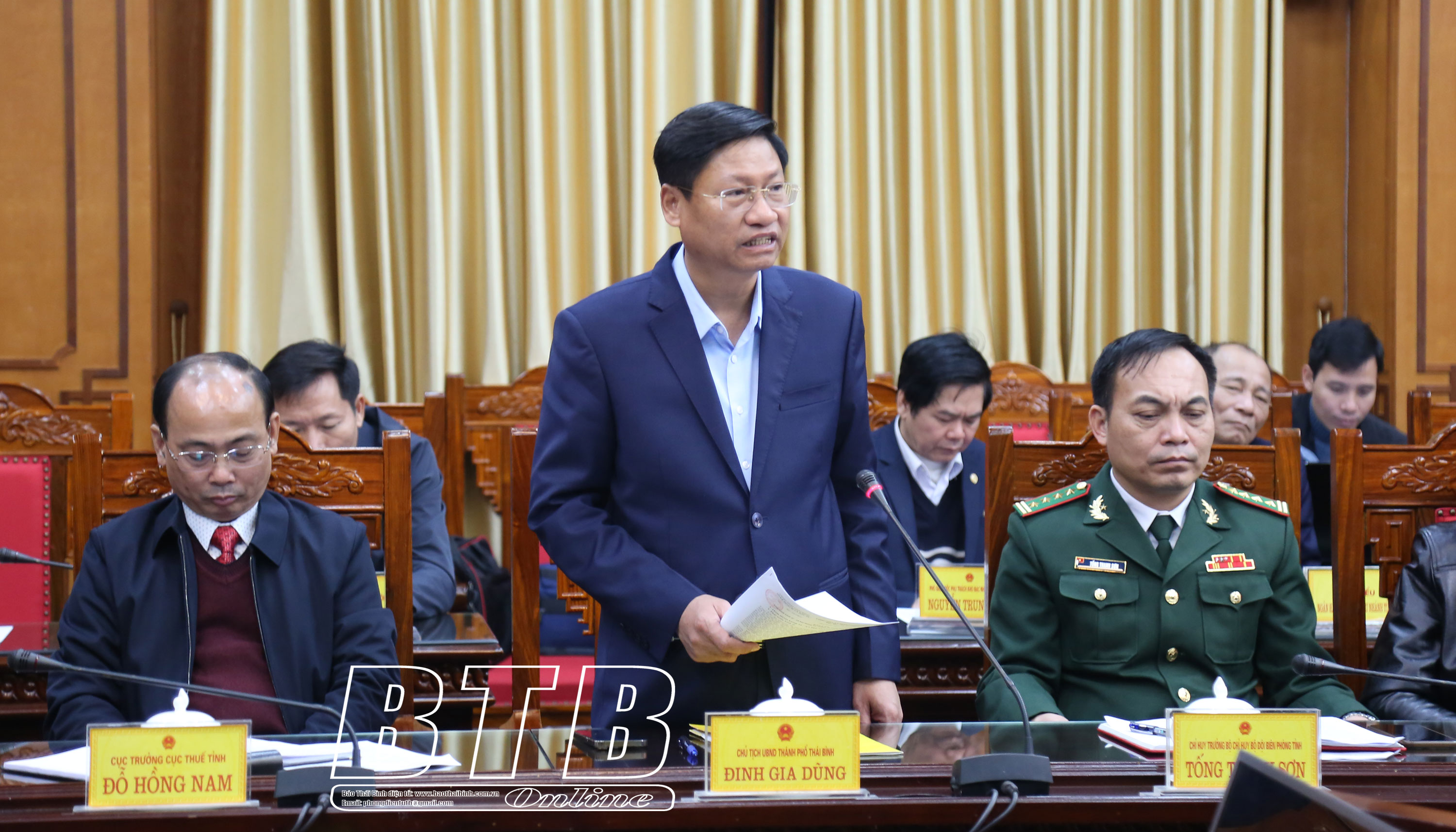 Lãnh đạo thành phố Thái Bình phát biểu tại cuộc họp.