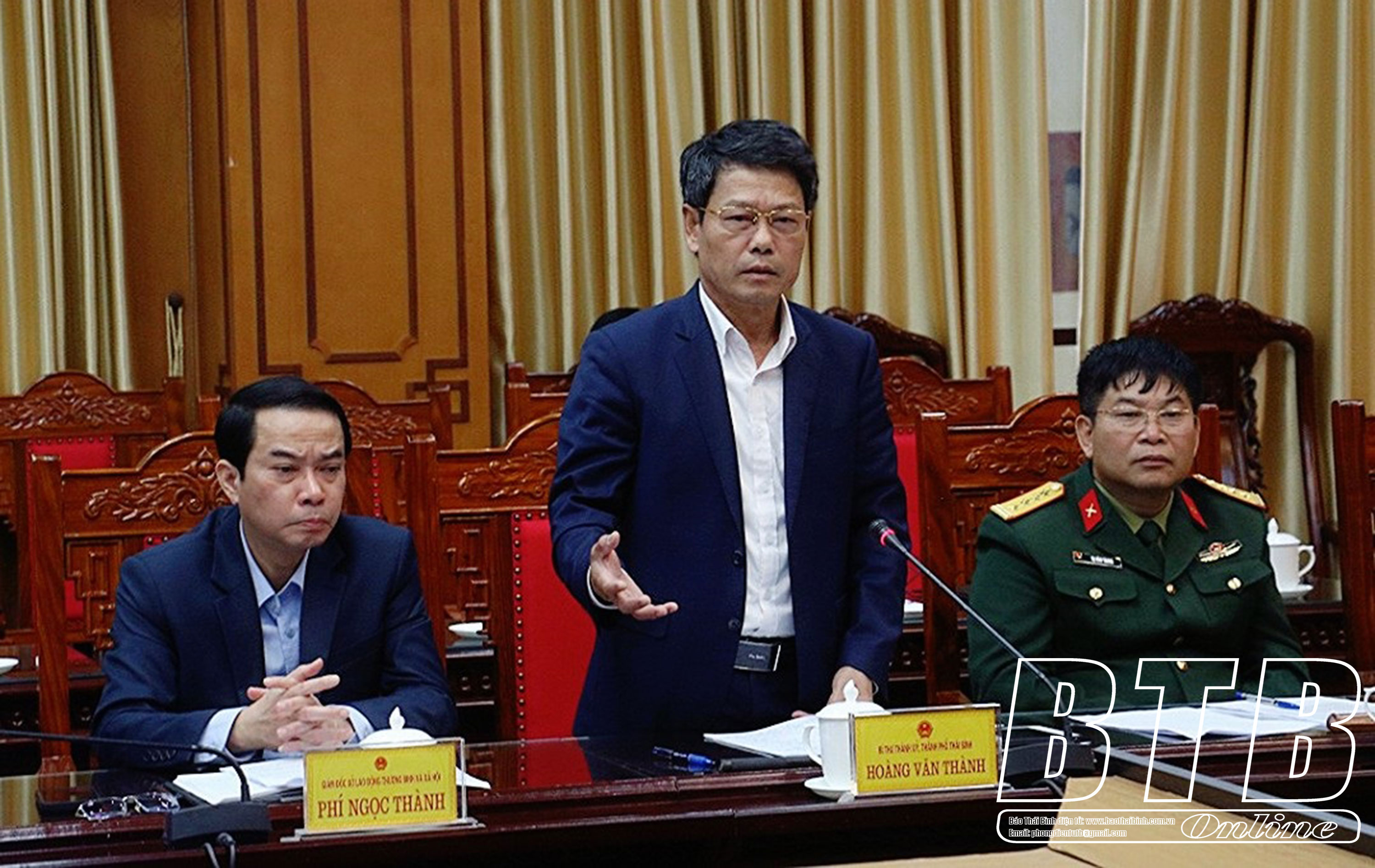 Đồng chí Hoàng Văn Thành, Ủy viên Ban Thường vụ Tỉnh ủy, Bí thư Thành ủy, Chủ tịch HĐND thành phố phát biểu tại cuộc họp.